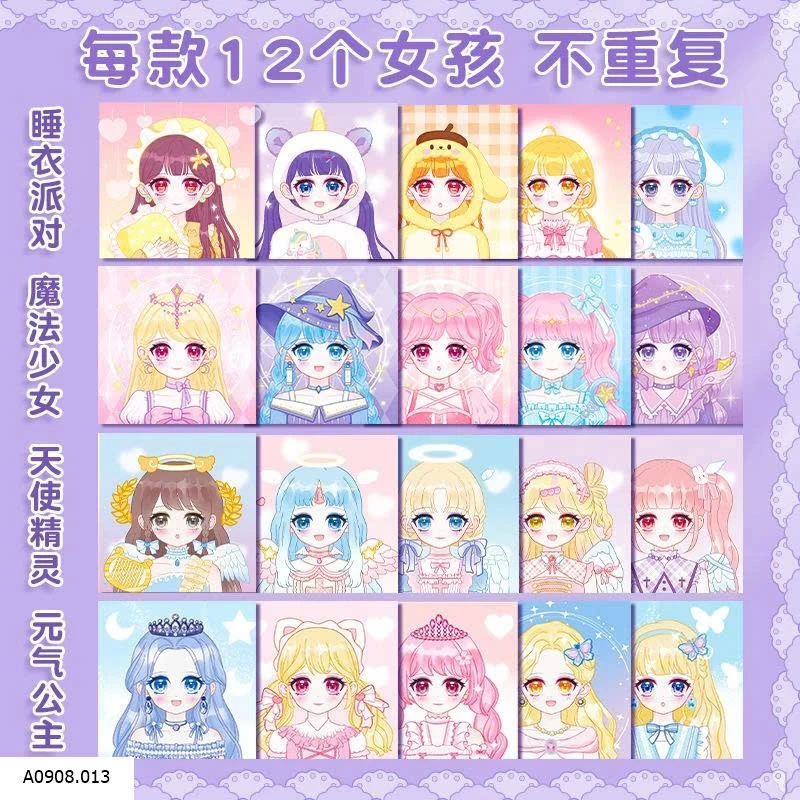 Sách bóc dán sticker công chúa lung linh xinh ơi là xinh các mẹ ơi, bé nào mê kiểu thời trang búp bê công chúa thì món này chuẩn gu luôn rồi ạ. Mỗi quyển 4 trang 12 hình cô gái và 100 phụ kiện
