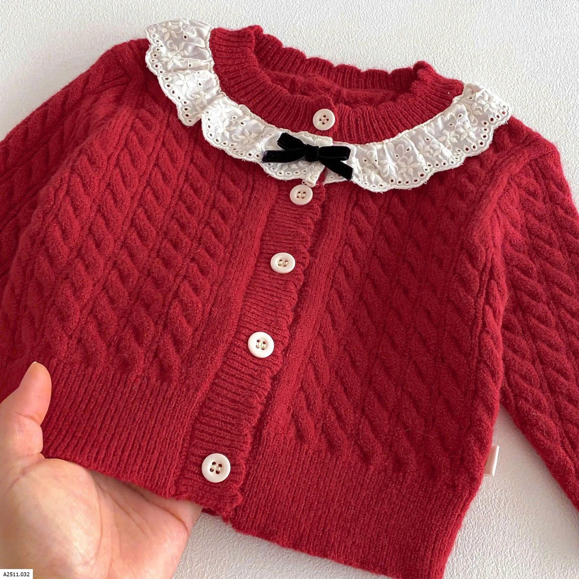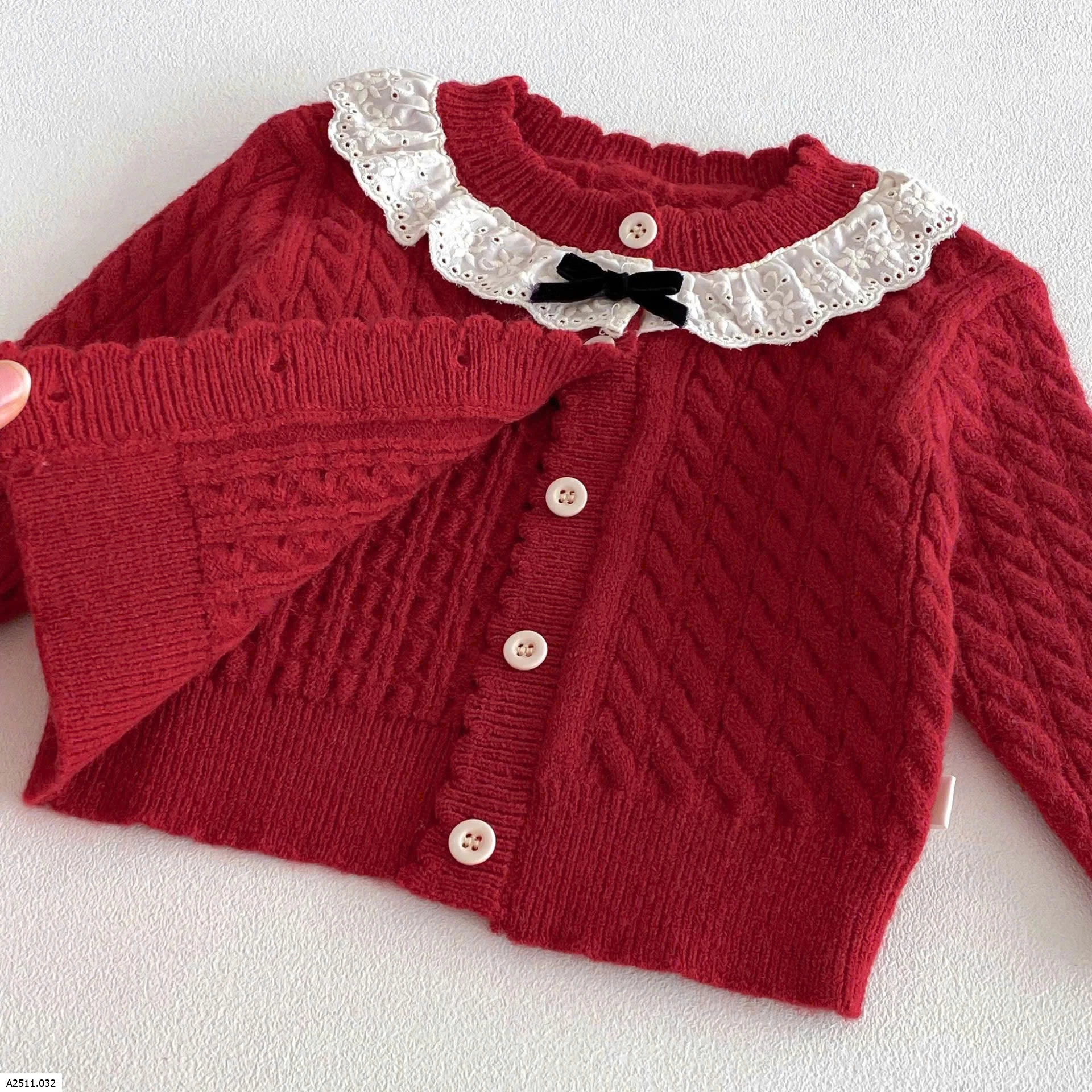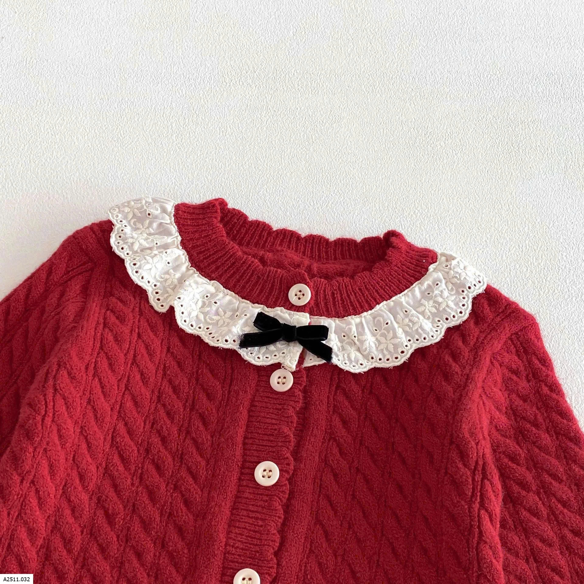 ÁO KHOÁC LEN ĐỎ BÉ GÁI CỔ REN Giá sỉ 142k