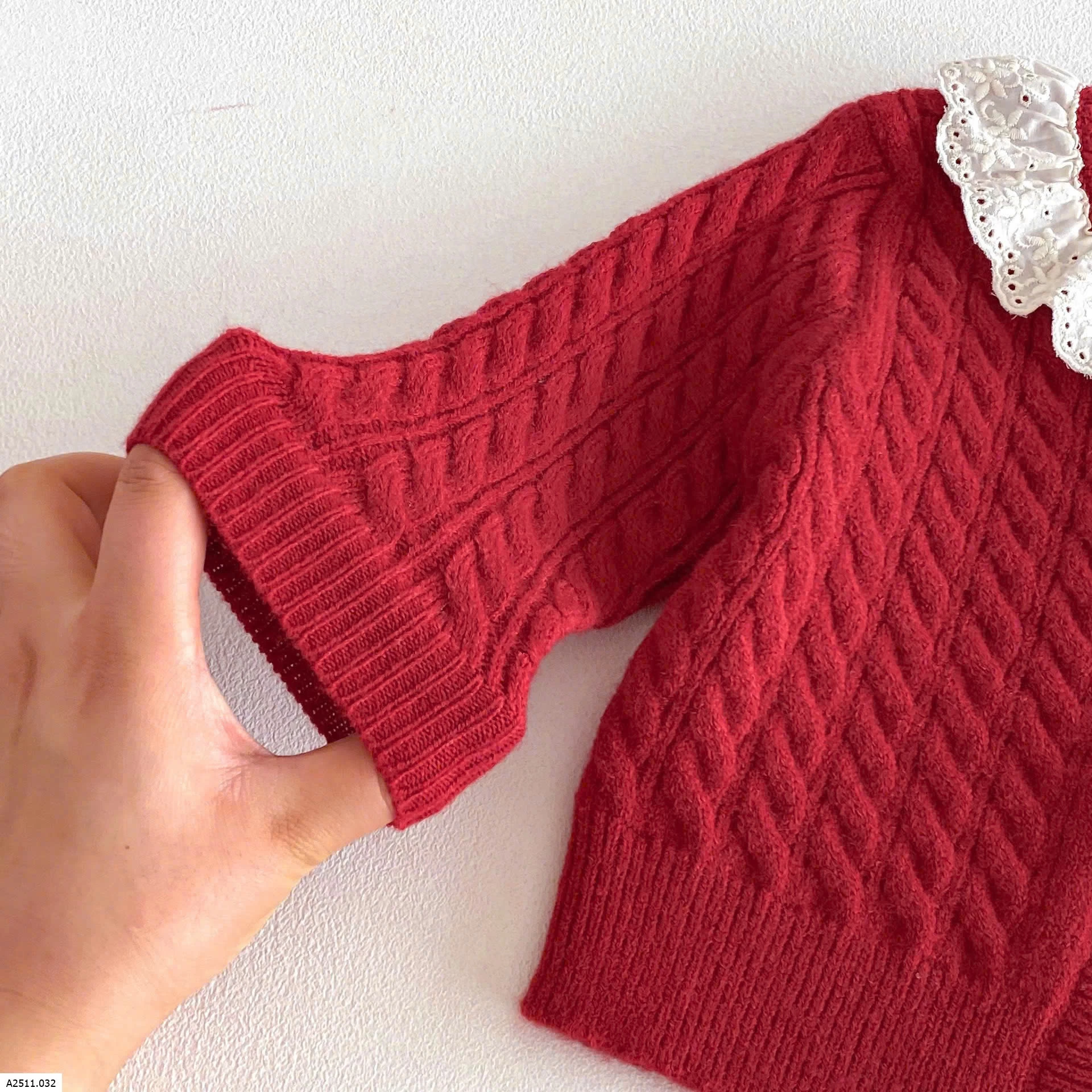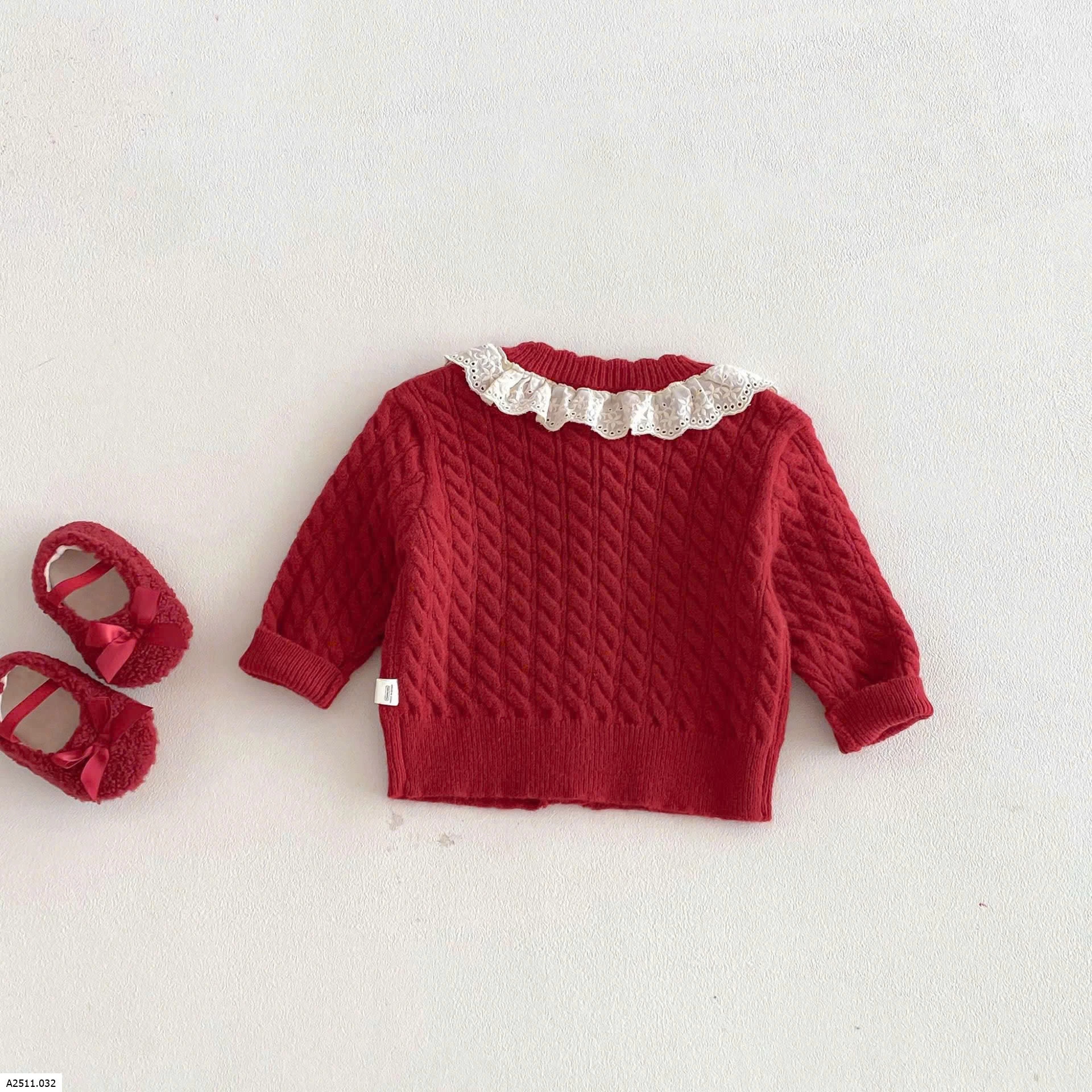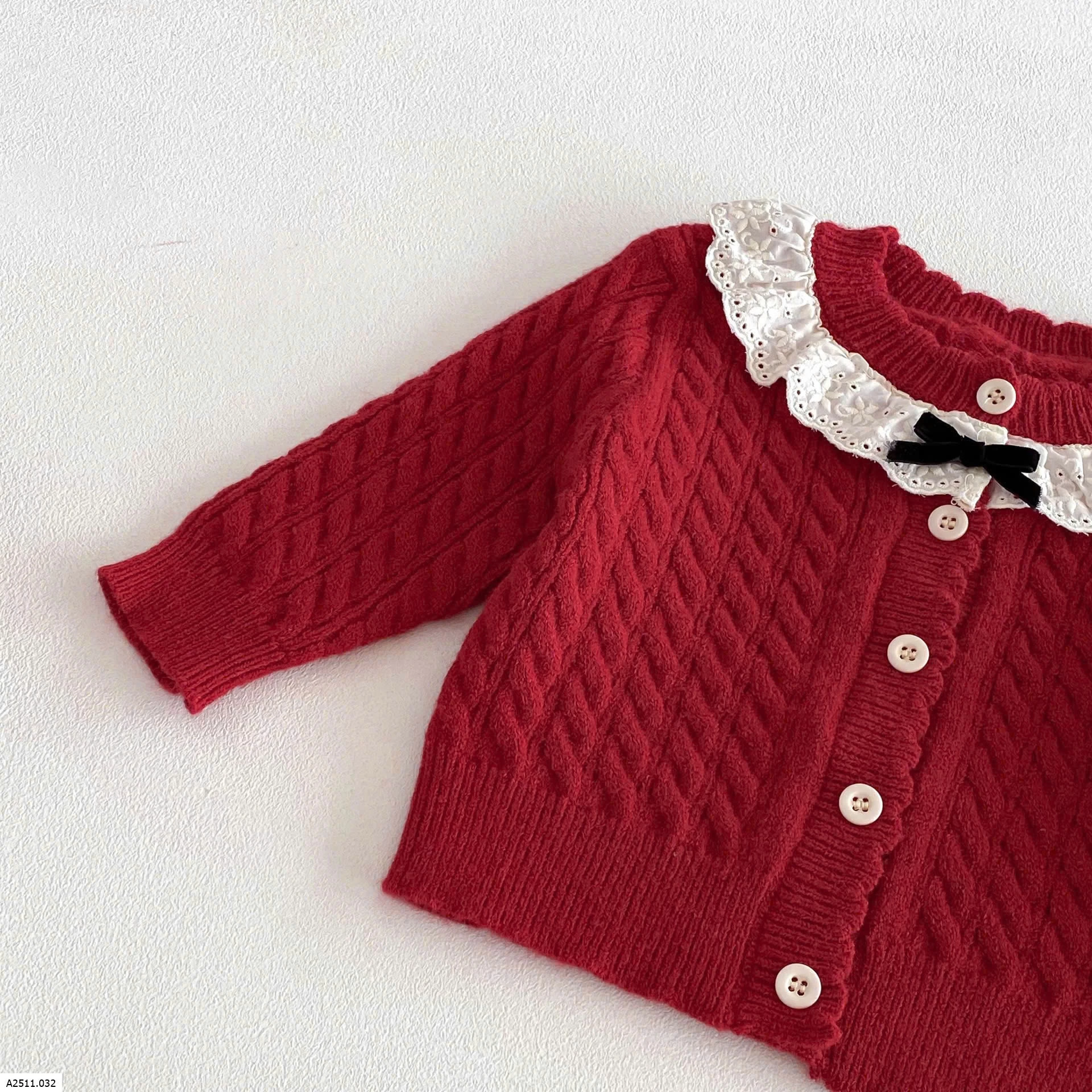ÁO KHOÁC LEN ĐỎ BÉ GÁI CỔ REN Giá sỉ 142k