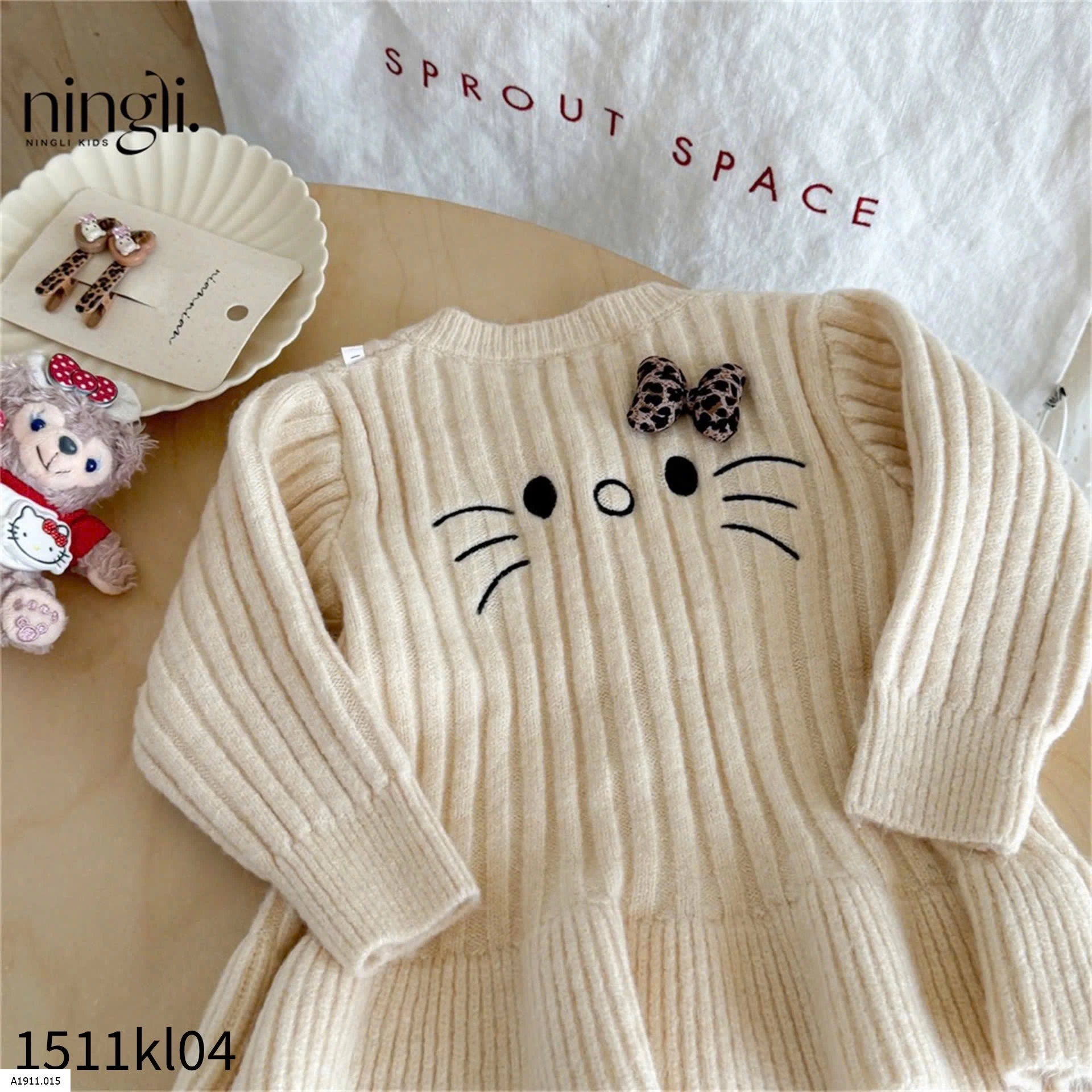 ÁO KHOÁC LEN KITTY CHO BÉ GÁI Giá sỉ 170k