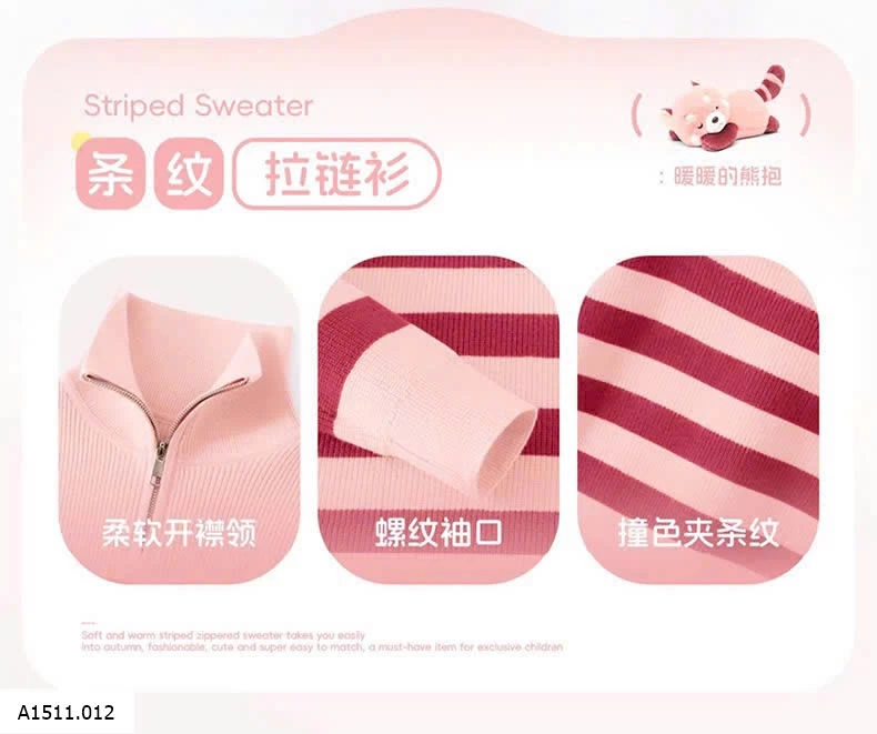 ÁO LEN BÉ GÁI KHOÁ CỔ Giá sỉ sz 110-130 : 170K sz 140-160: 190K