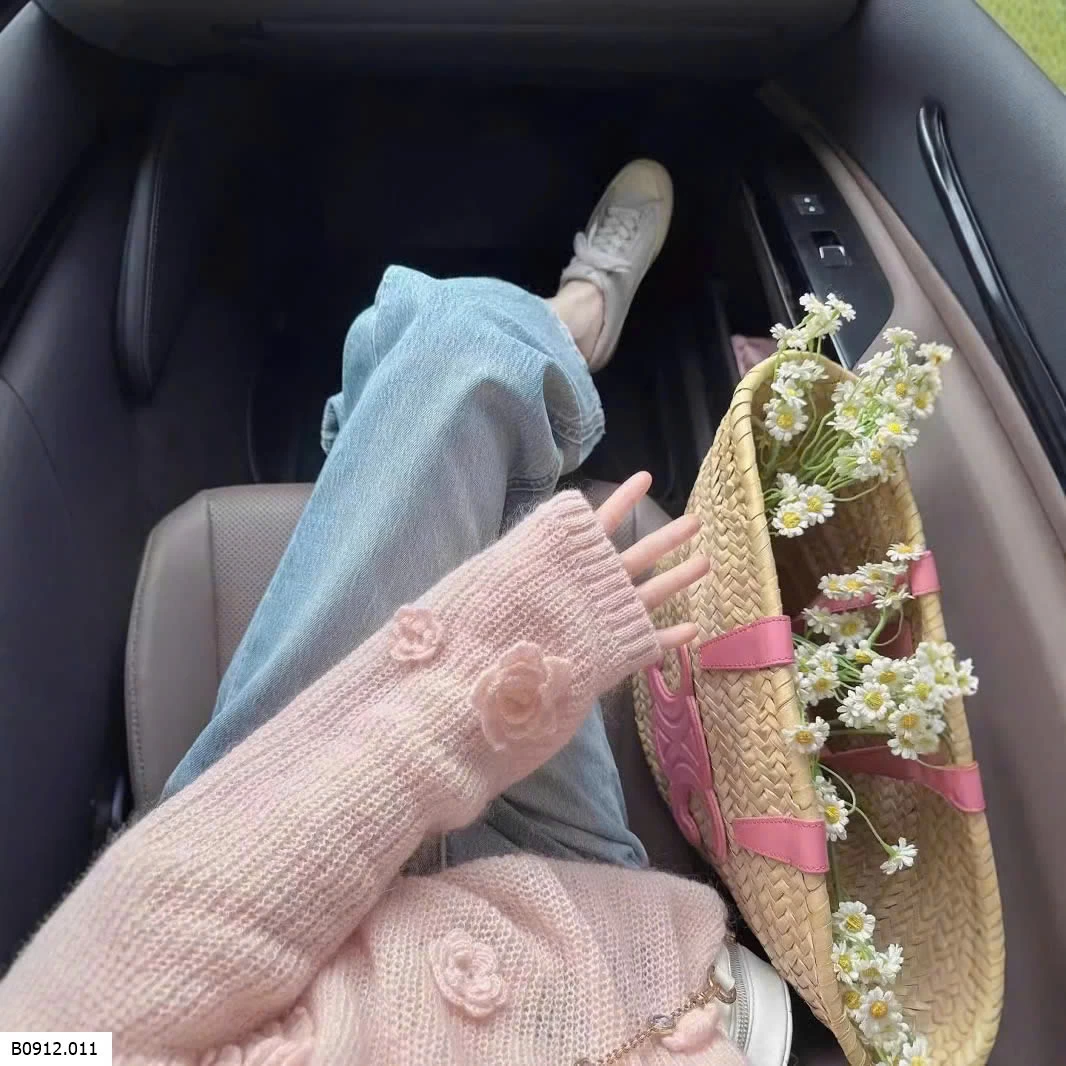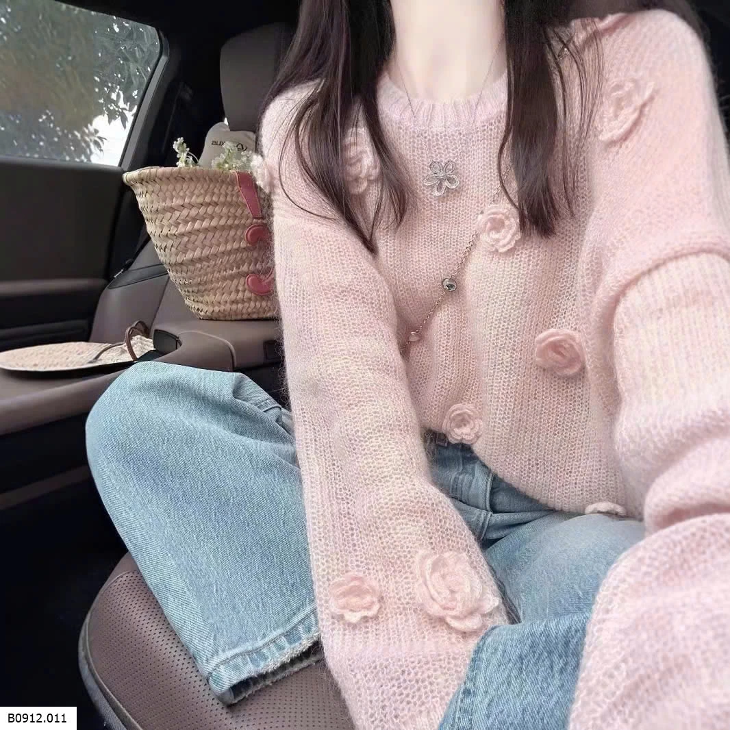 ÁO LEN ĐAN HỒNG GẮN HOA 3D