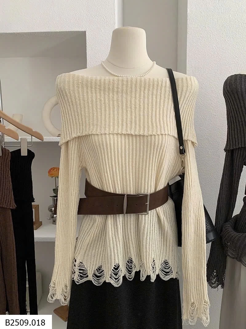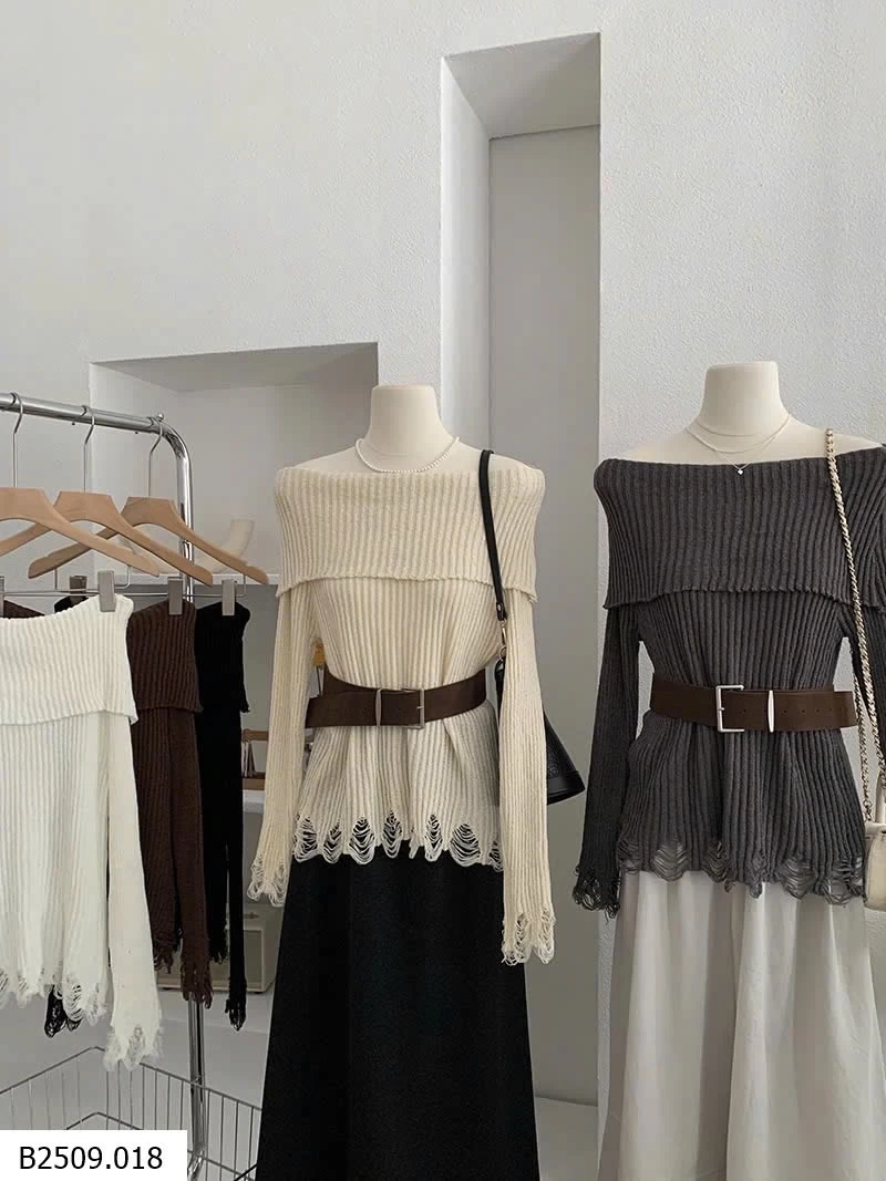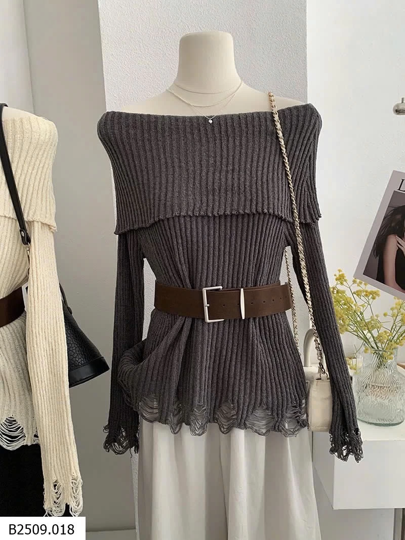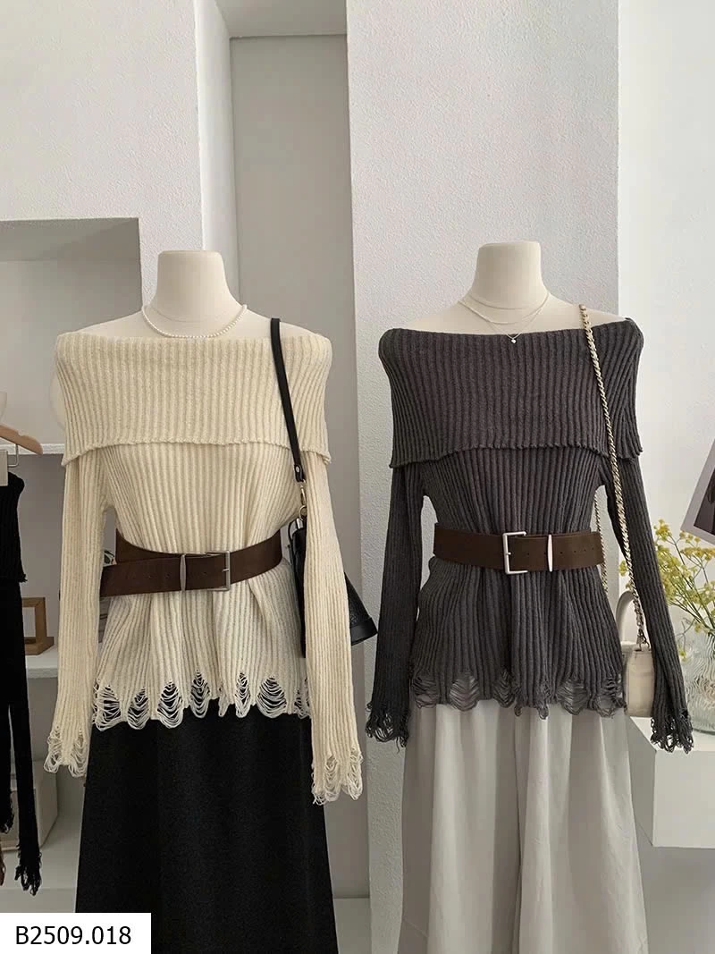 ÁO LEN DỆT KIM DÀI TAY HỞ VAI KÈM ĐAI