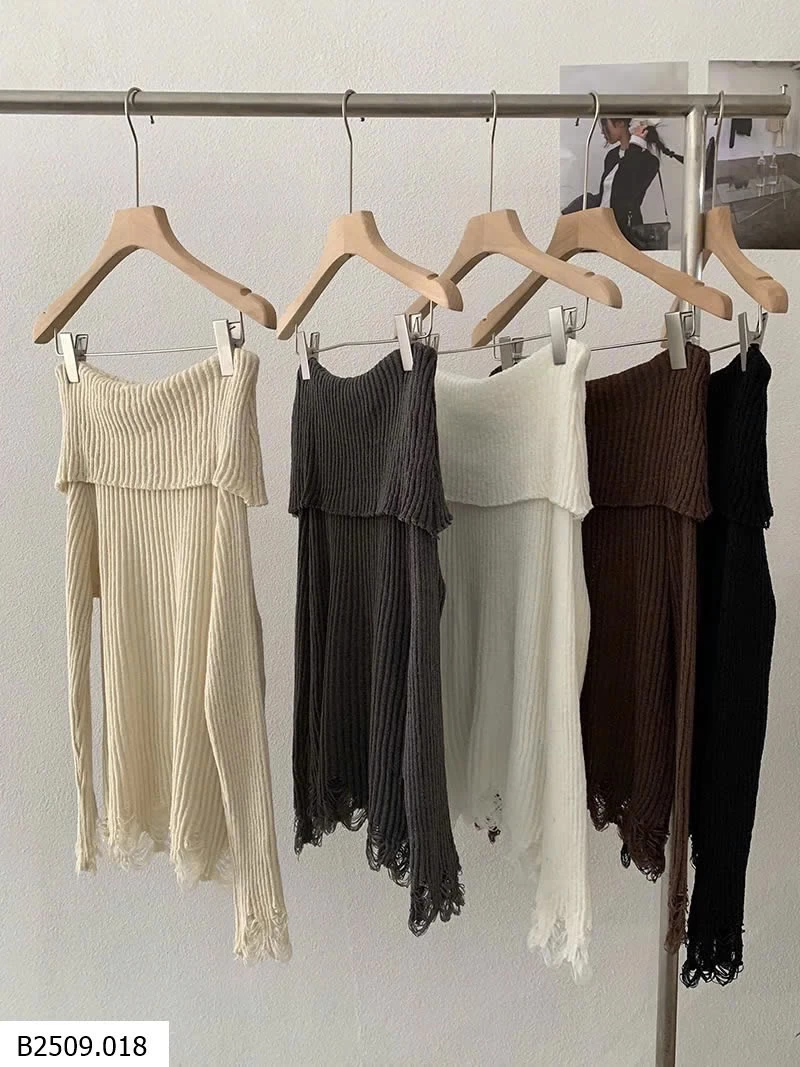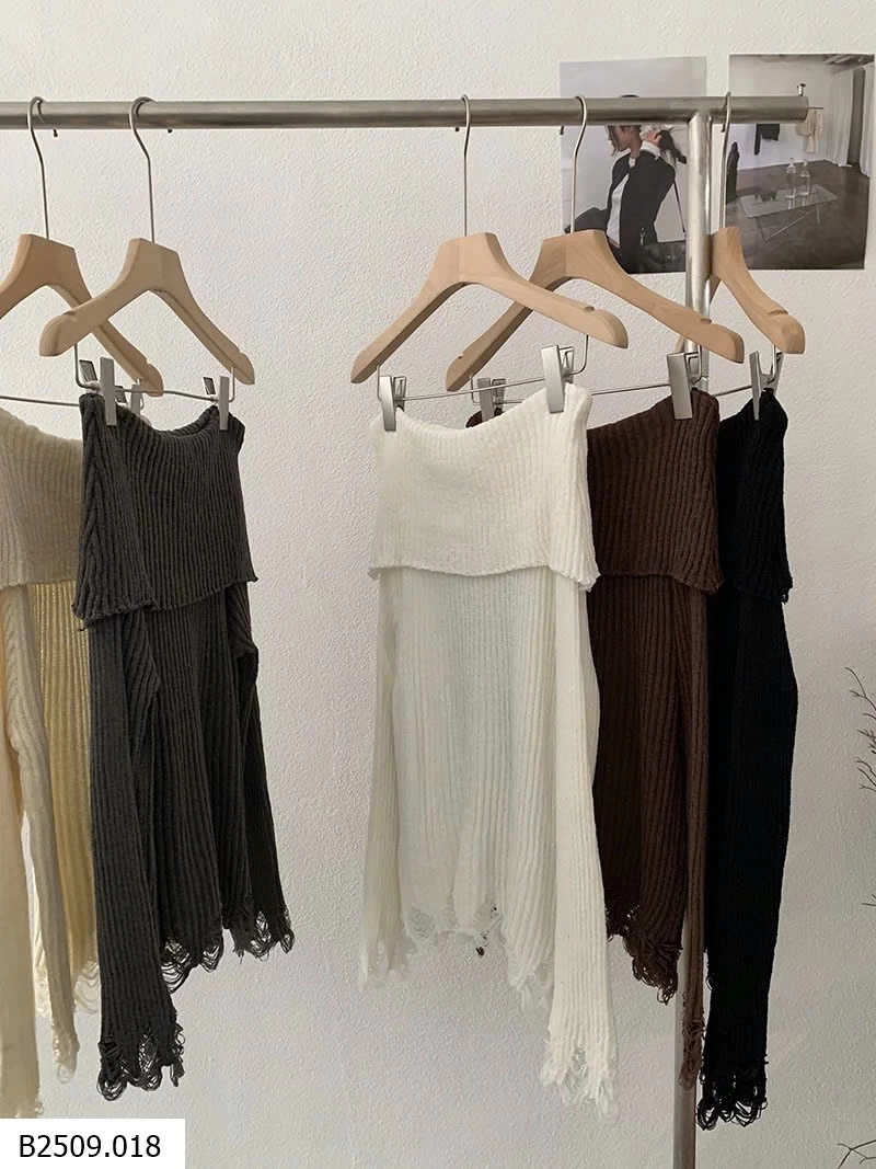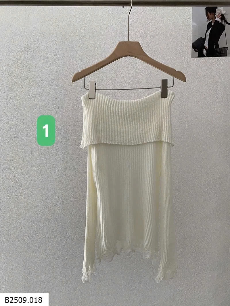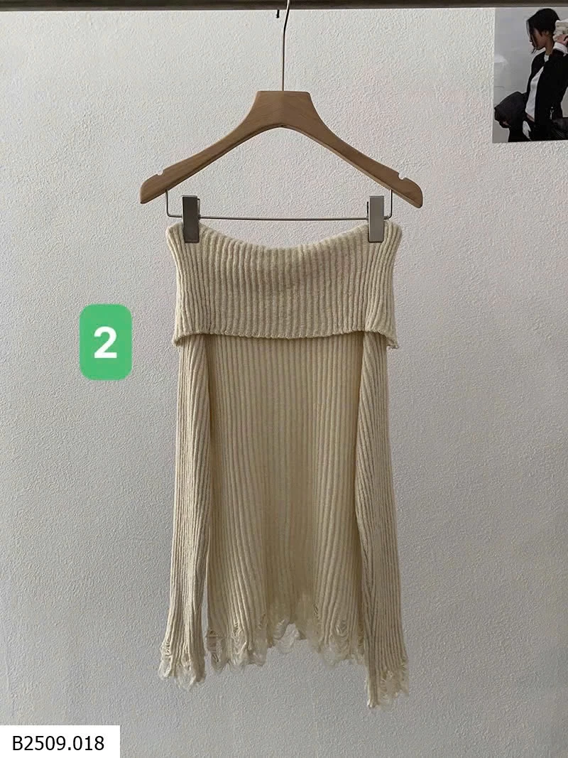 ÁO LEN DỆT KIM DÀI TAY HỞ VAI KÈM ĐAI