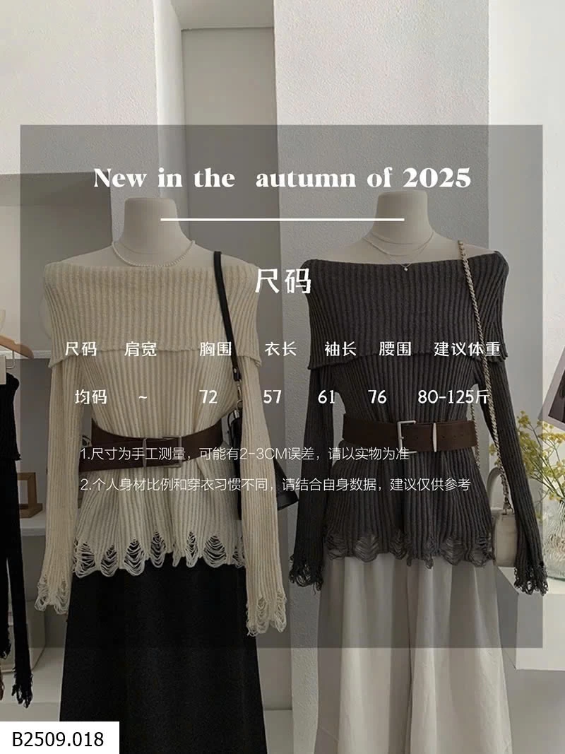 ÁO LEN DỆT KIM DÀI TAY HỞ VAI KÈM ĐAI Giá sỉ 163k