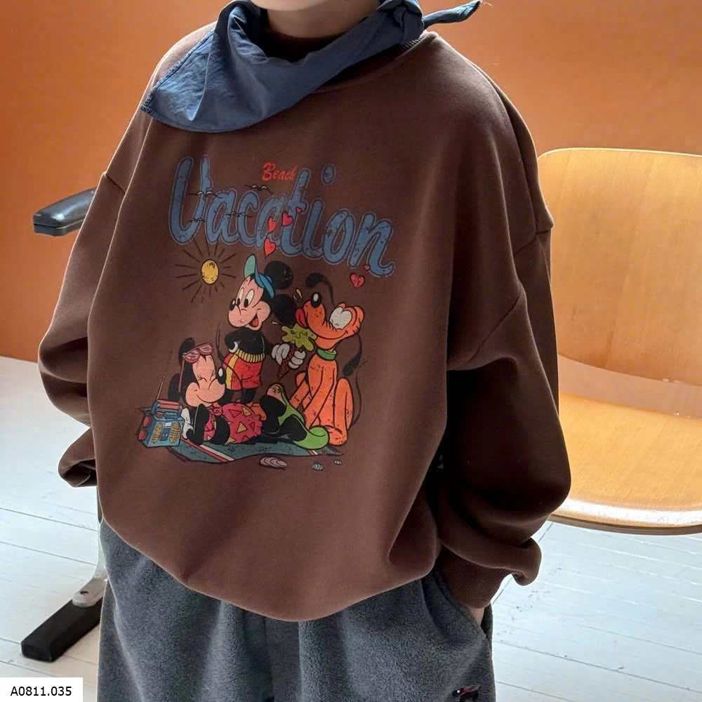 ÁO NỈ DÀY CỔ TRÒN IN HÌNH CUTE CHO BÉ Giá sỉ 205k