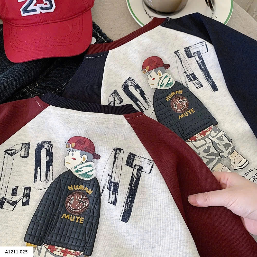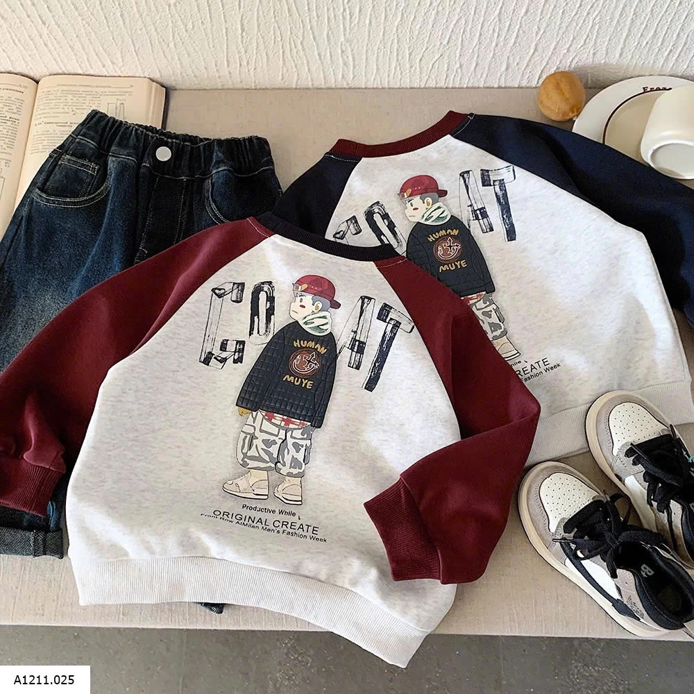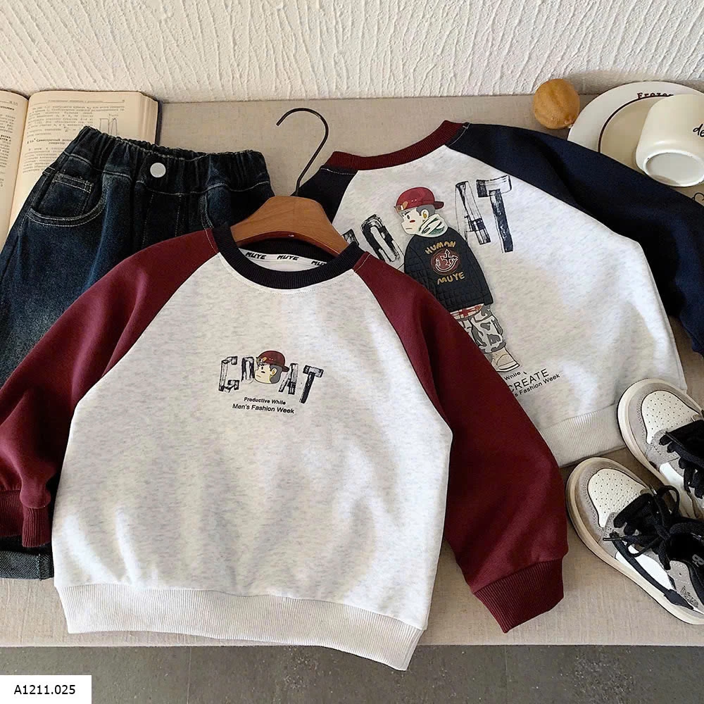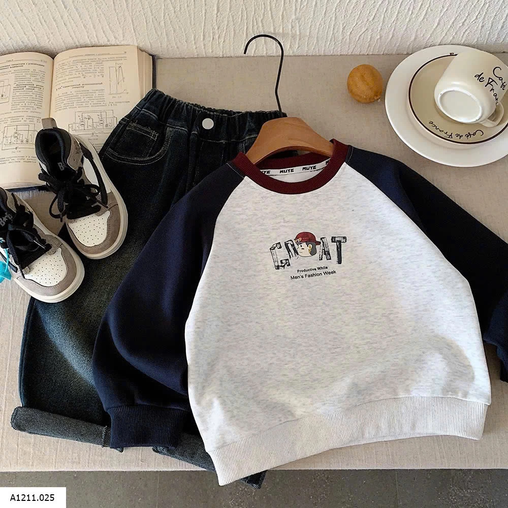 ÁO NỈ PHỐI MÀU TAY IN LƯNG