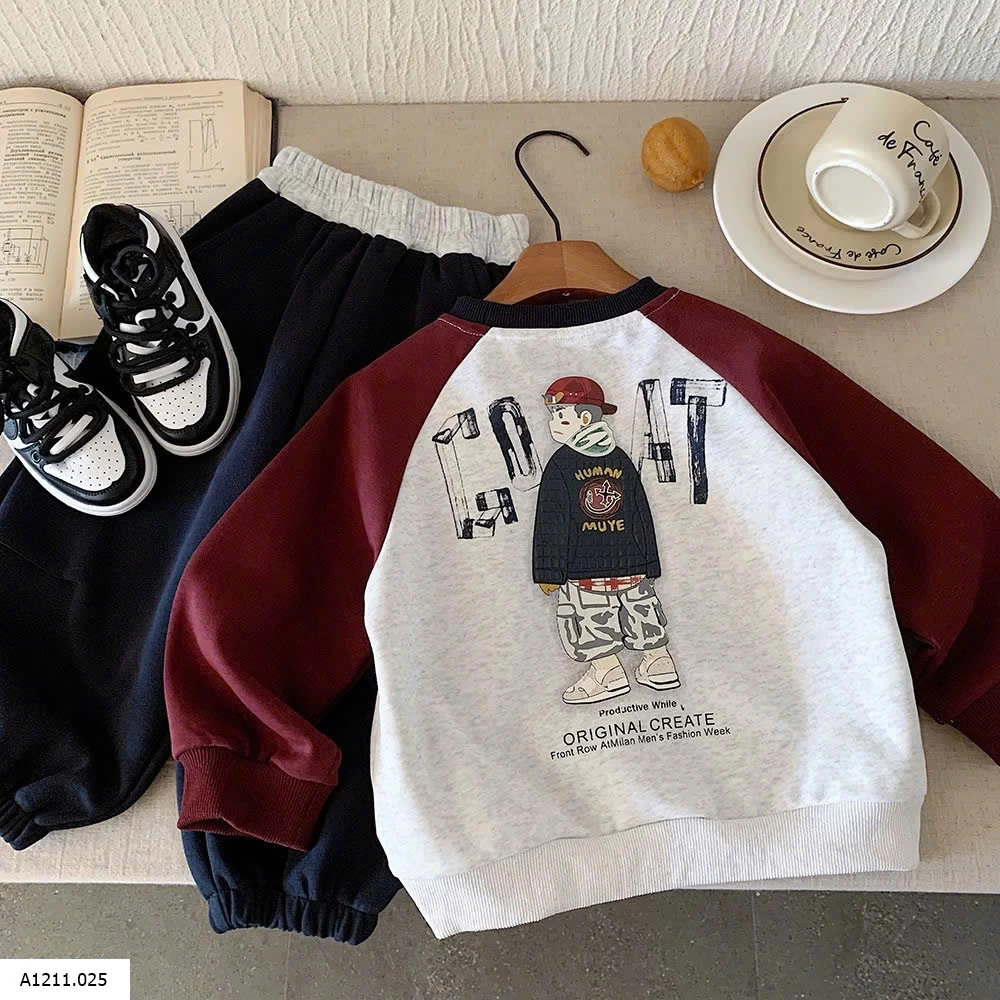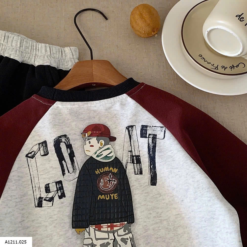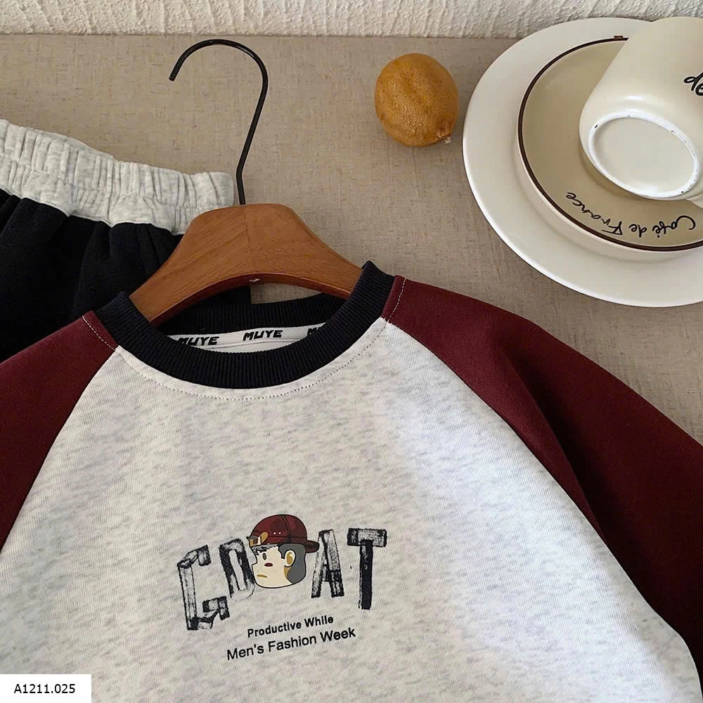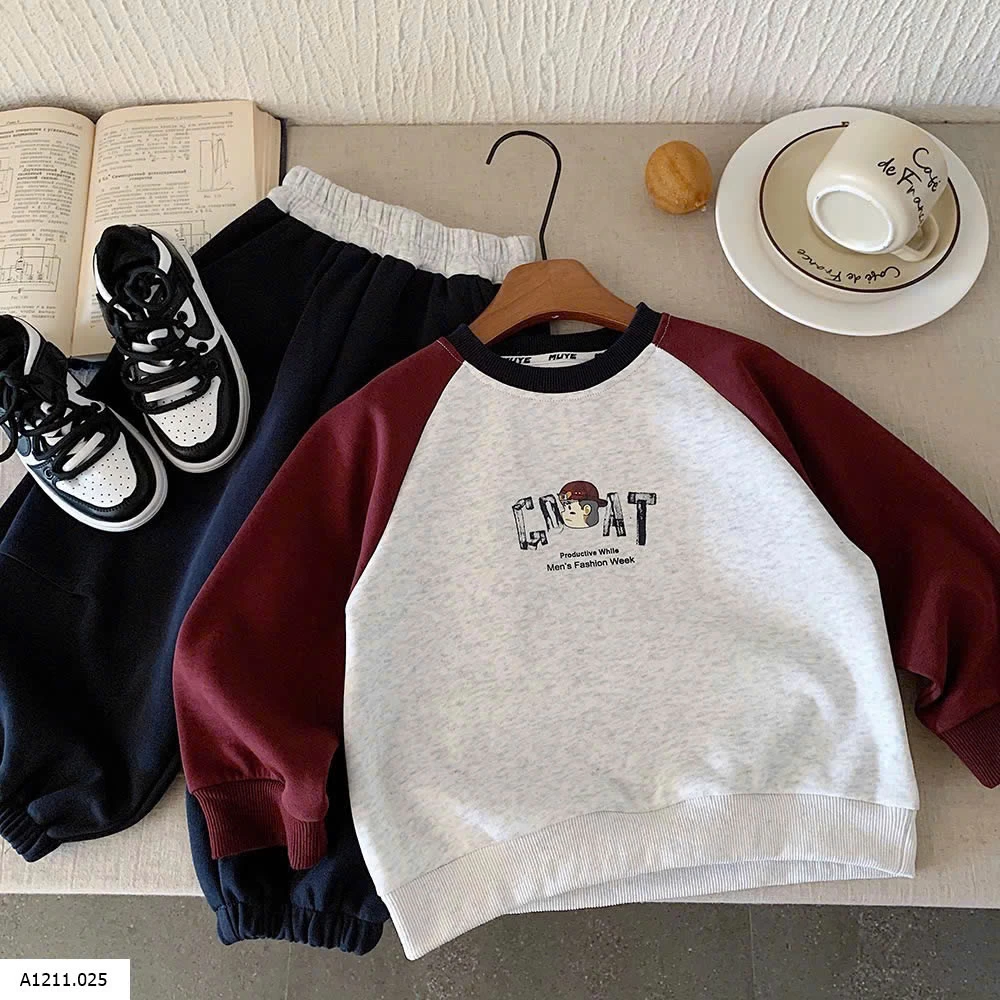 ÁO NỈ PHỐI MÀU TAY IN LƯNG