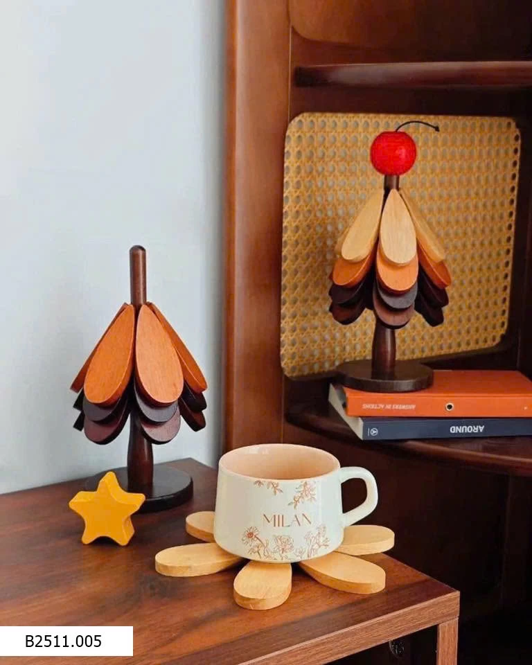 Miếng lót bằng gỗ chống trơn trượt, chịu được nhiệt độ cao, chống xước mặt bàn