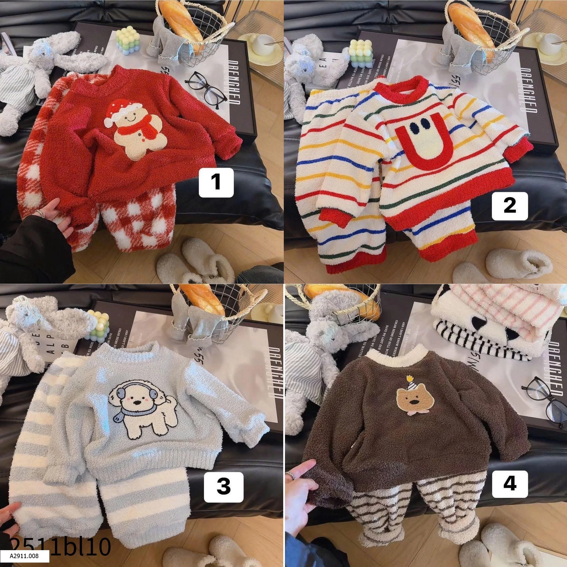 BỘ MẶC NHÀ MÙA ĐÔNG CHO BÉ Giá sỉ Sz 80-110 #90k Sz 120-160 #110k
