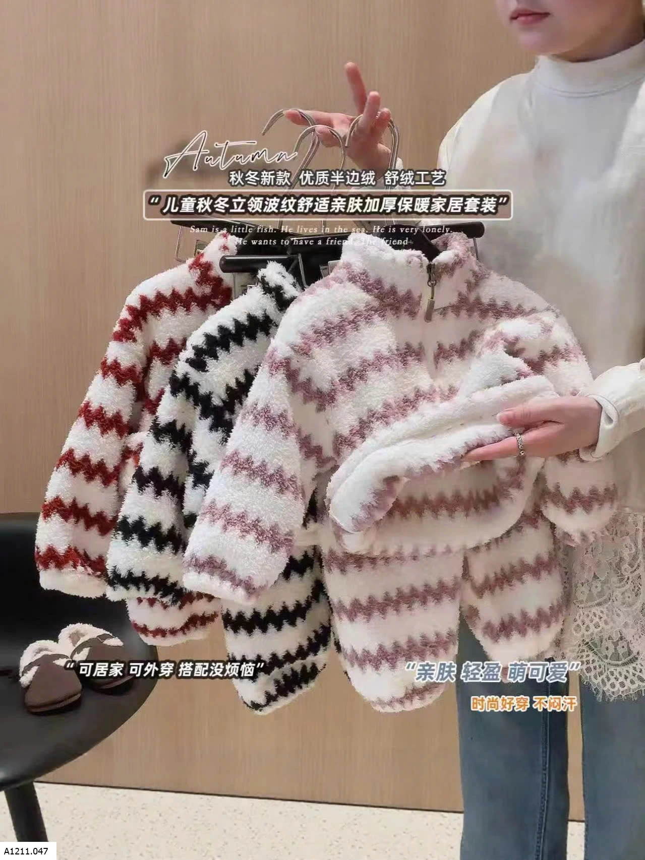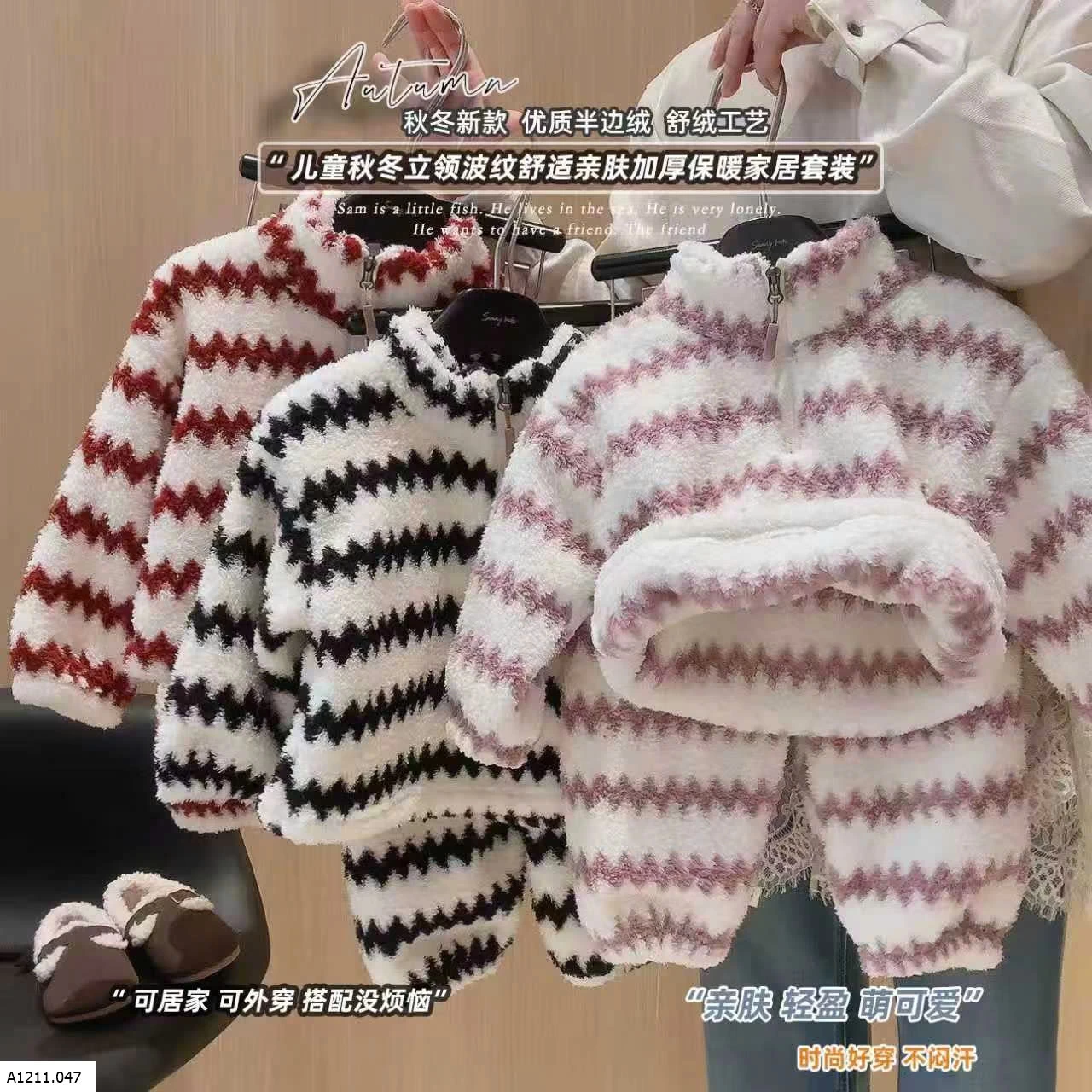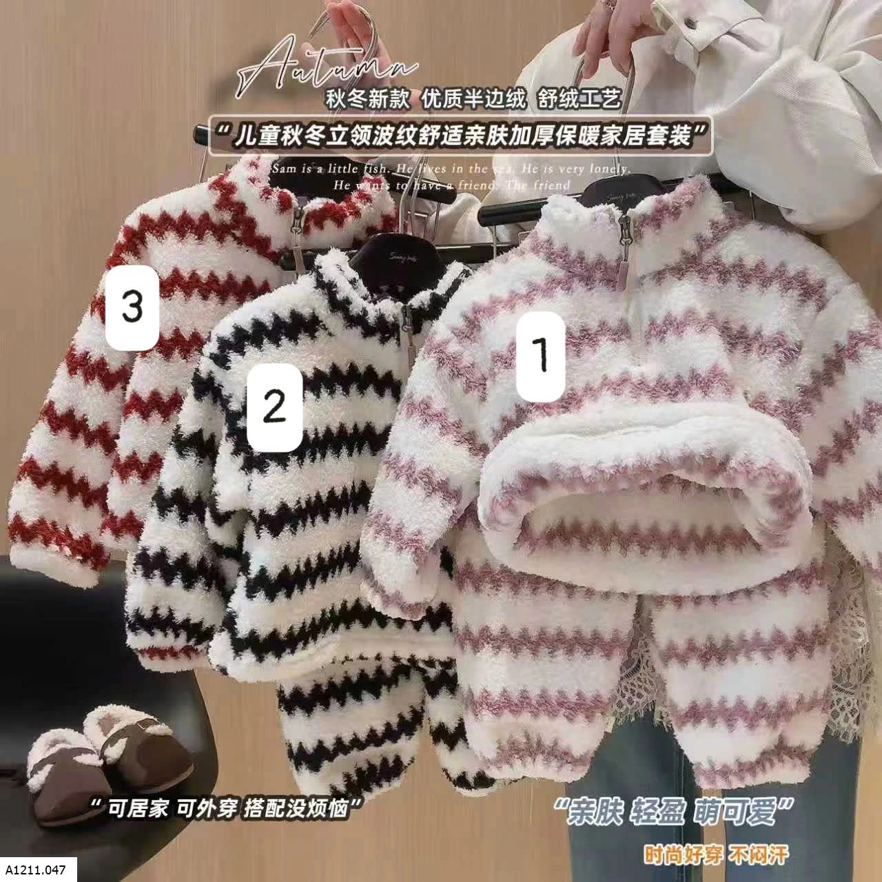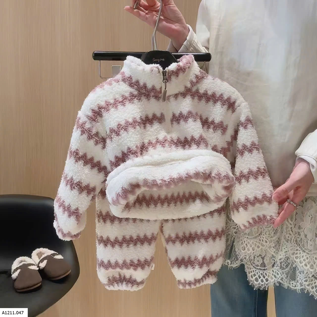 BỘ NỈ LÔNG KẺ SỌC KHÓA KÉO Giá sỉ 80-120 110k 130-160 130k