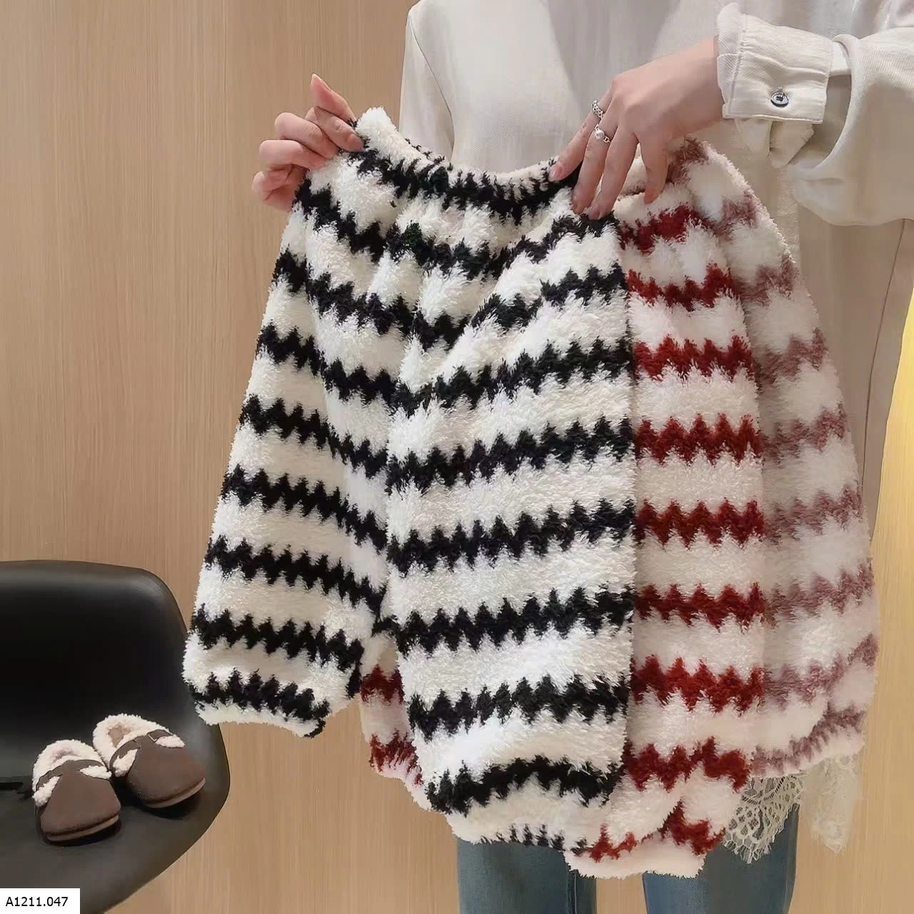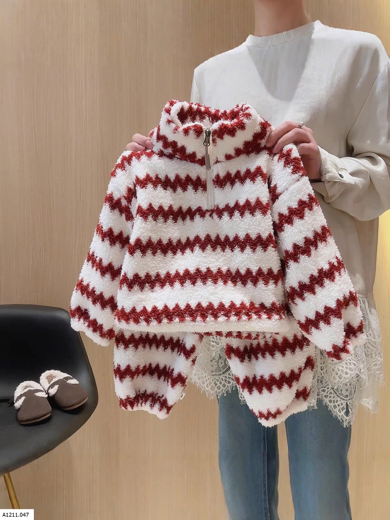 🪯BỘ NỈ LÔNG KẺ SỌC KHÓA KÉO