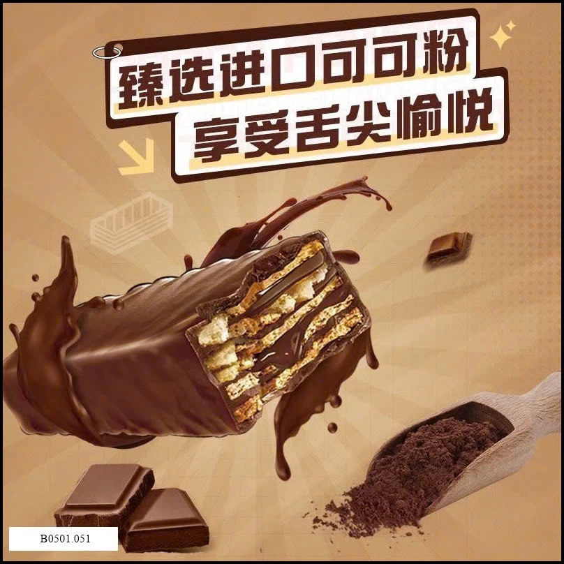 👉 Bánh xốp nhiều lớp giòn rụm, phủ socola dày, ăn là cuốn liền tay luôn á.