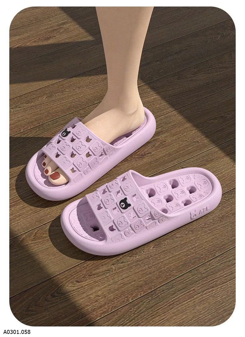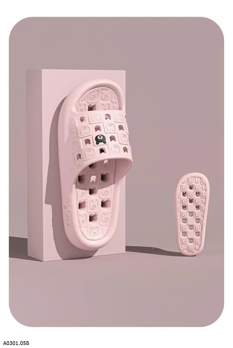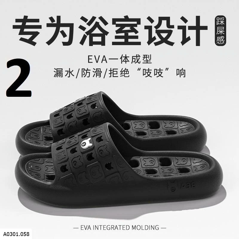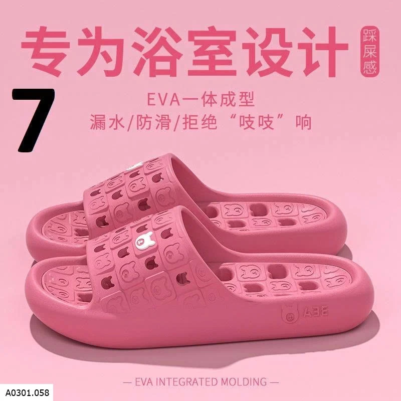 Dép EVA đúc nguyên khối, mềm nhẹ đi êm chân. Thiết kế thoát nước + chống trơn trượt, hạn chế trượt ngã trong nhà tắm