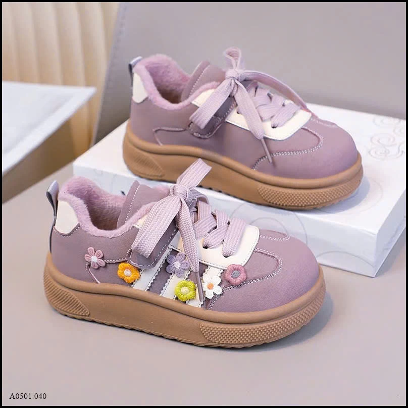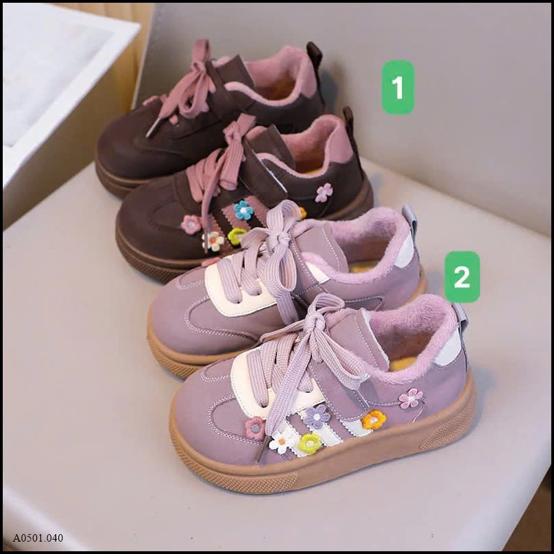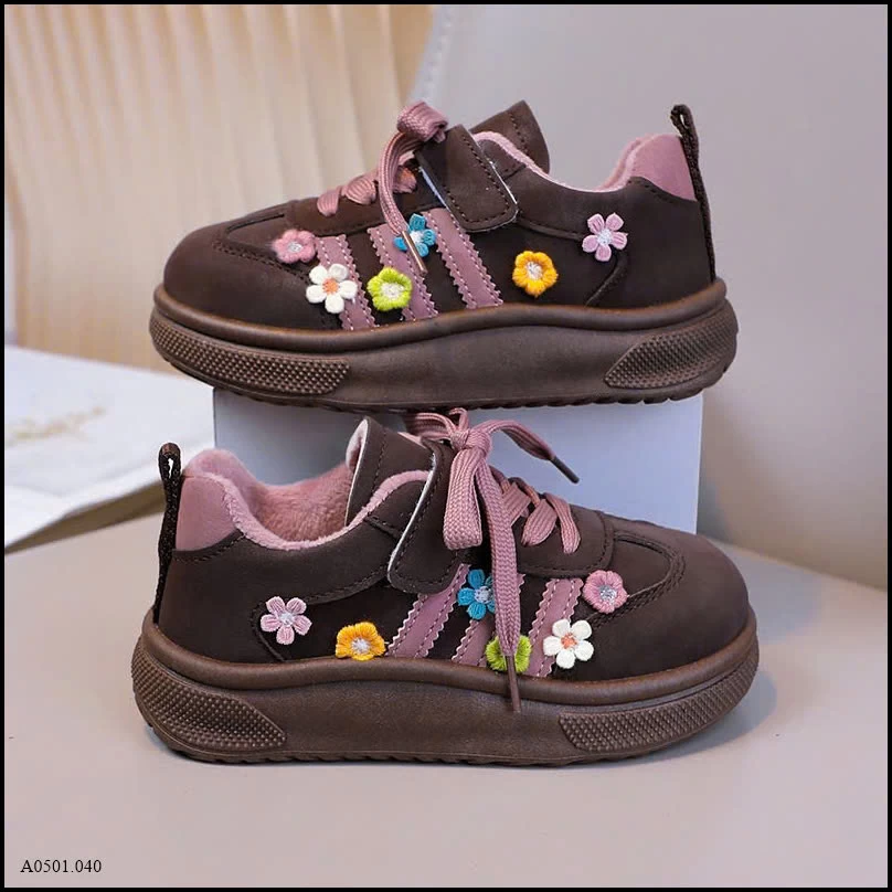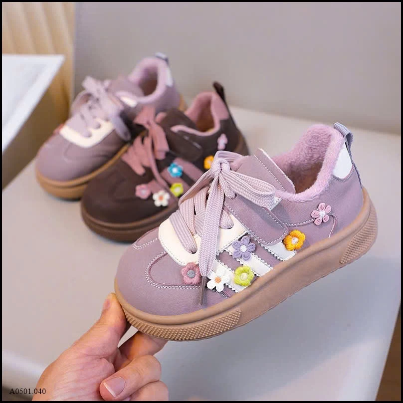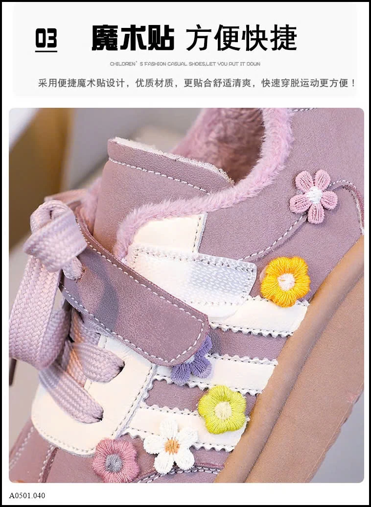 GIÀY BÉ GÁI HOA THÊU PHỐI DÂY MIX QUAI DÁN