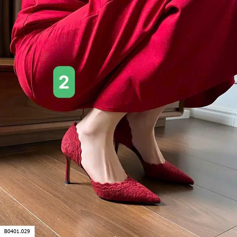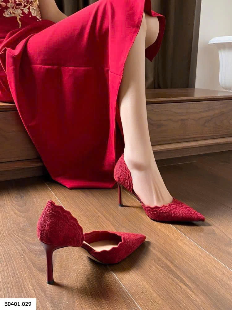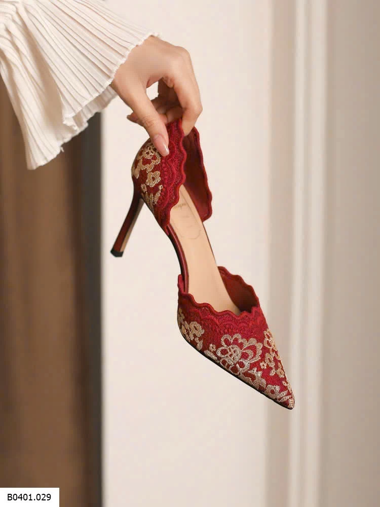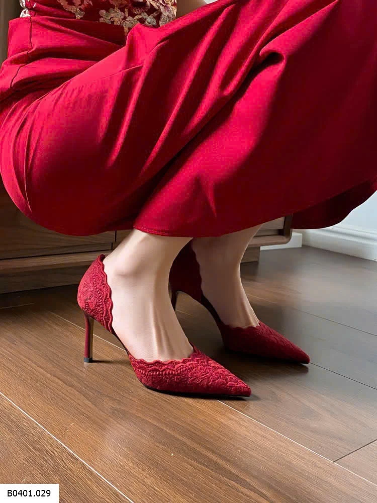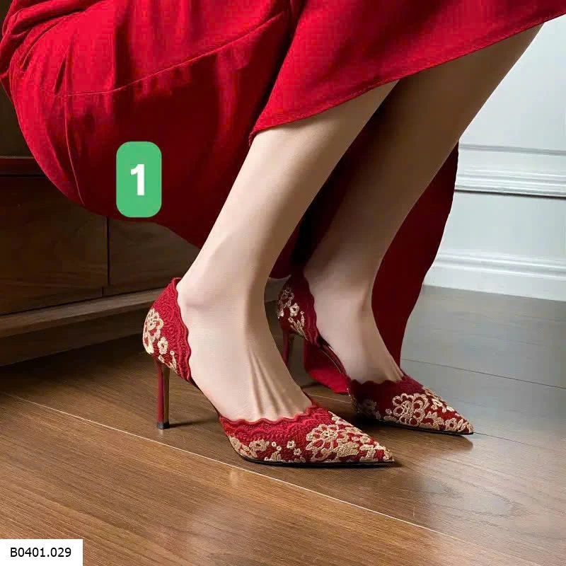 GIÀY CAO GÓT MŨI NHỌN ĐỎ REN THÊU Giá sỉ 305k