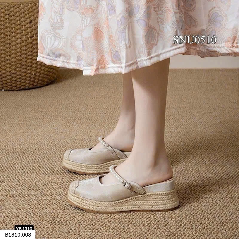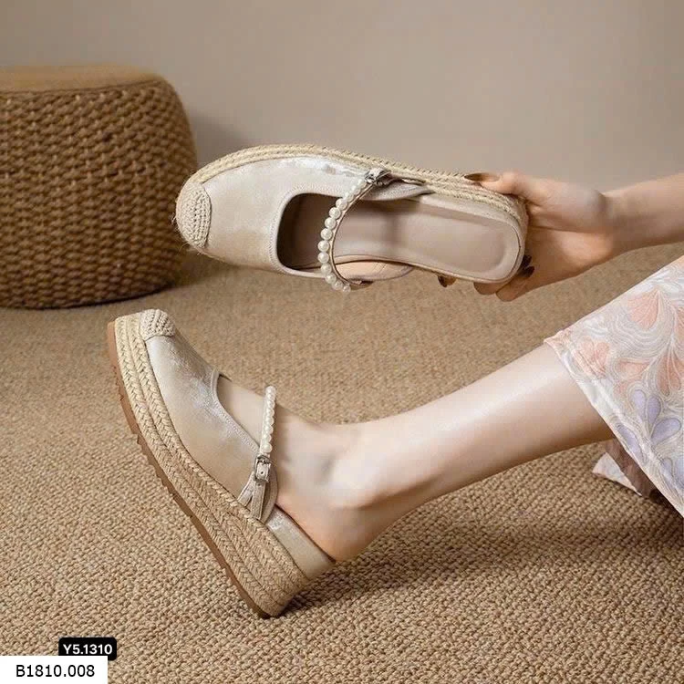 Giày đế cói phối quai ngọc trai kiểu Mary Jane hở gót Giá sỉ 240k