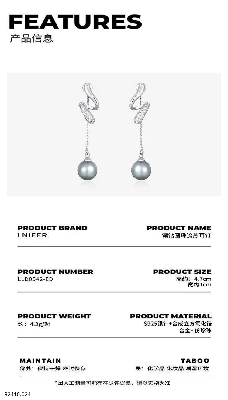 Hoa tai bạc S925 hãng Lnieer Giá sỉ 110k