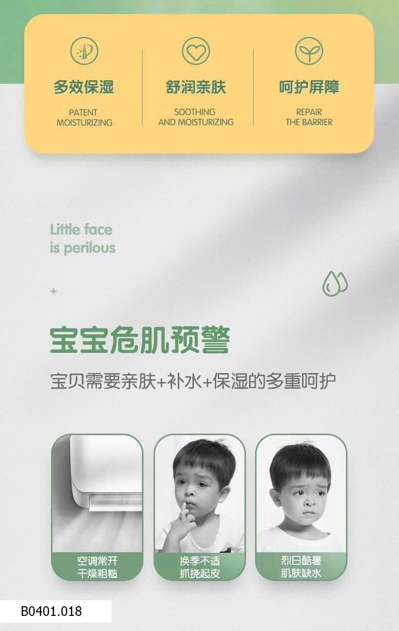 Kem dưỡng da em bé công thức dịu nhẹ, cấp ẩm sâu, giúp làm mềm và bảo vệ làn da non nớt của bé trước tình trạng khô ráp, bong tróc do thời tiết hoặc máy lạnh. Kết cấu mỏng nhẹ, thấm nhanh, không gây nhờn rít, hỗ trợ làm dịu da, củng cố hàng rào bảo vệ tự nhiên cho da bé, dùng được hằng ngày an toàn.
