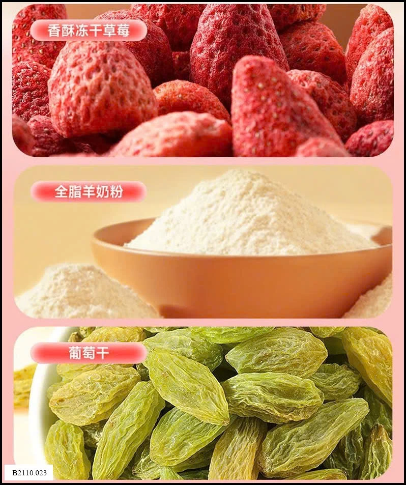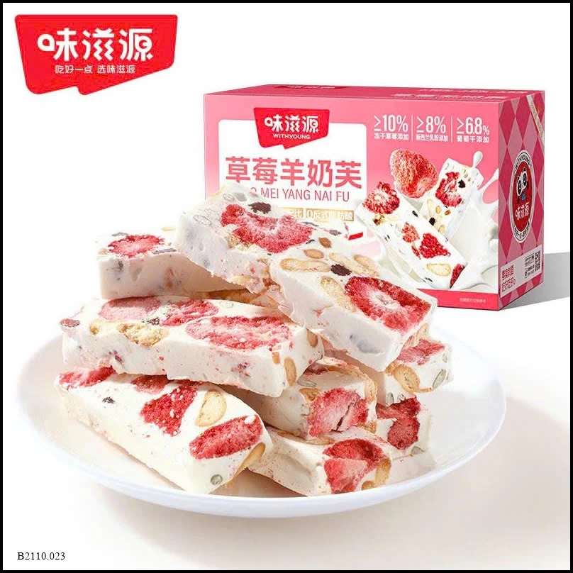 ✅ Từng miếng kẹo dẻo ngọt dịu, xen lẫn vị chua thanh của dâu tây, béo ngậy của sữa dê, giòn bùi của hạt bí và nho khô.