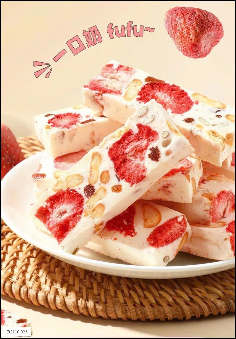 🍓 Kẹo dẻo sữa dê vị dâu tây thơm ngon - với vị chua ngọt của dâu, béo thơm của sữa dê và bơ, kèm độ giòn bùi từ hạt bí và nho khô.
