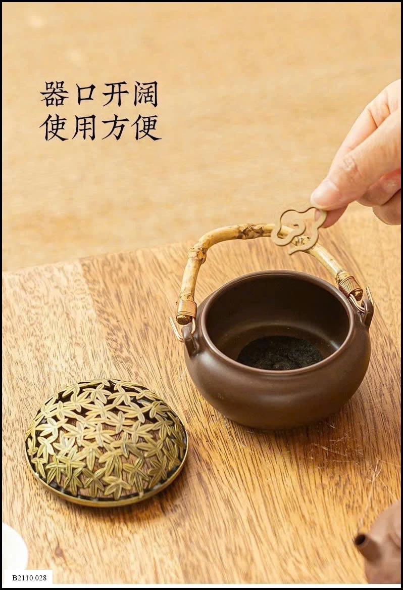 👉Chất liệu: Gốm – Nắp hợp kim – Quai tre