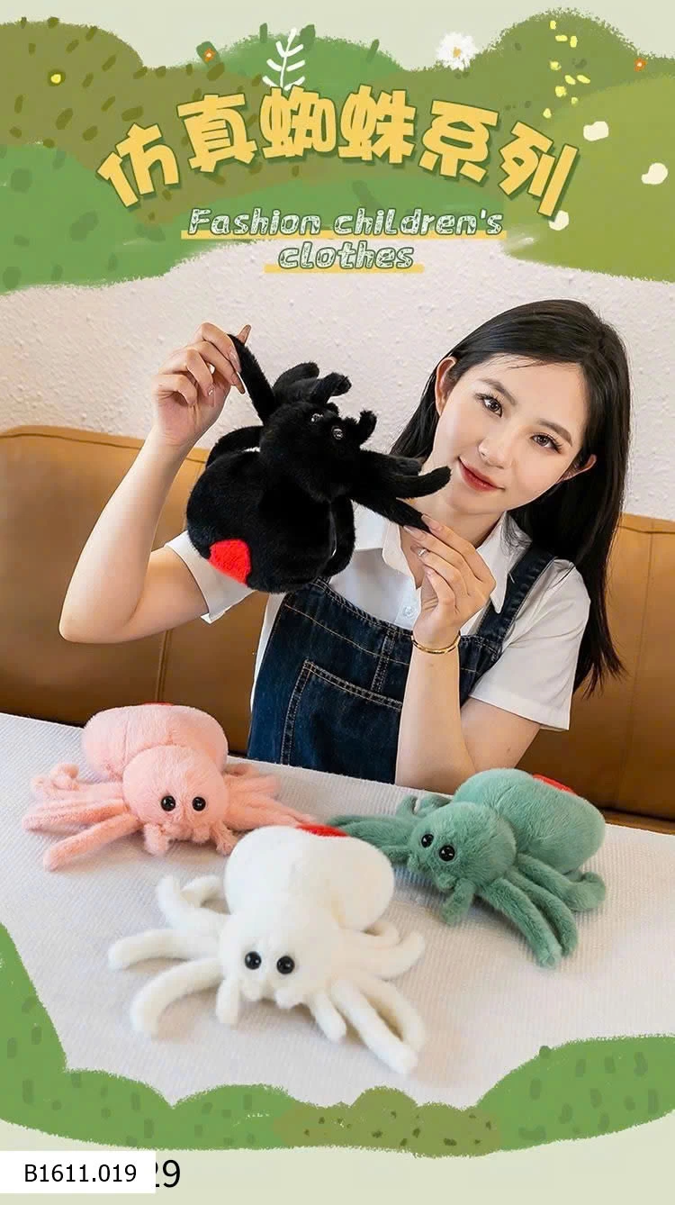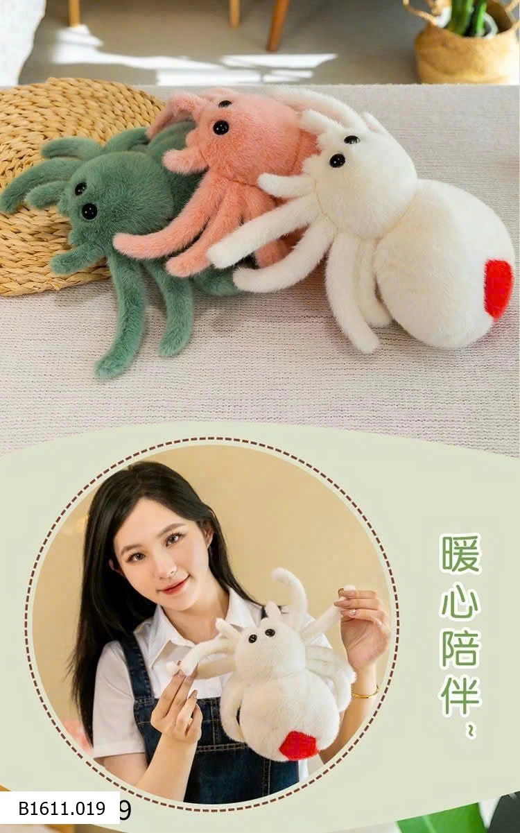 Nhện bông siêu mềm mịn, thiết kế đáng yêu với nhiều màu sắc bắt mắt.