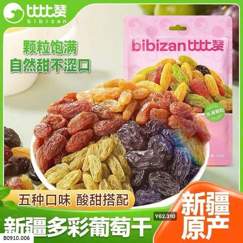 🍇 Nho khô tân cương không hạt bibizan, thịt dày không hạt, mix 5 loại nho.