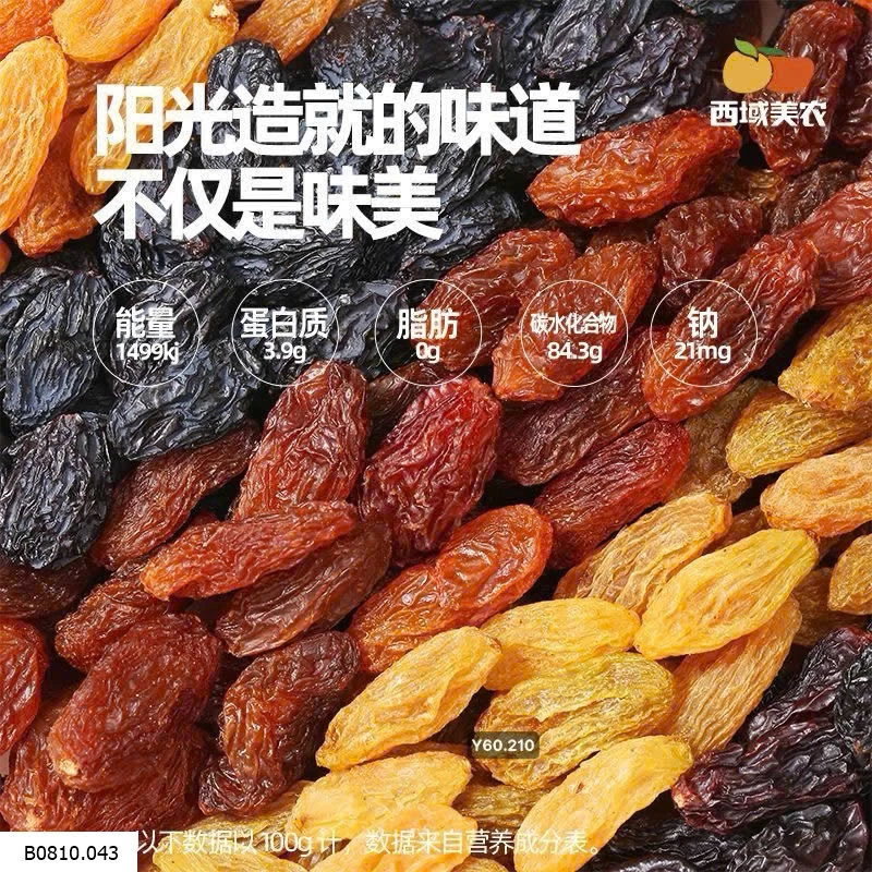 Nho khô tuyển chọn từ Tân Cương – Thổ Lỗ Phiên, vùng đất nổi tiếng với nắng gió và khí hậu khô ráo, giúp nho ngọt đậm đà, hạt đều đẹp.