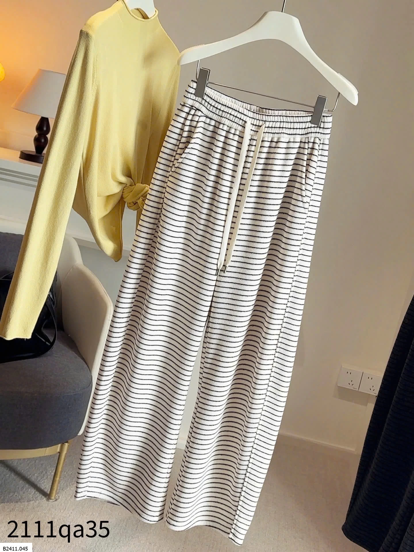 Quần ống rộng kẻ sọc siêu xinh, chất dày dặn, mềm mịn và ấm áp, giúp giữ nhiệt tốt mà vẫn giữ dáng thon gọn.