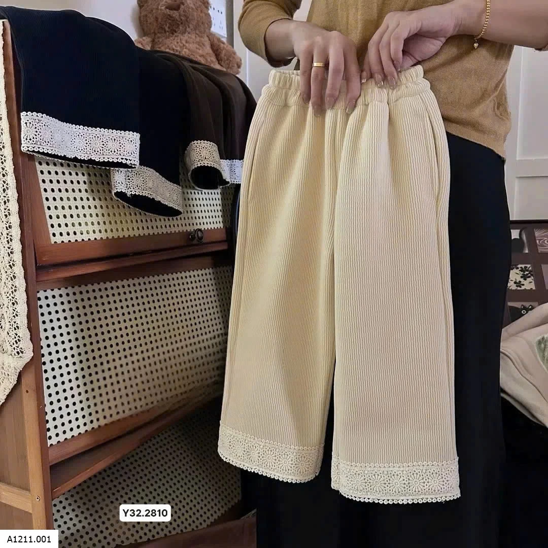 Quần xuông tăm lót nỉ phối gấu ren cho bé gái Giá sỉ 135k