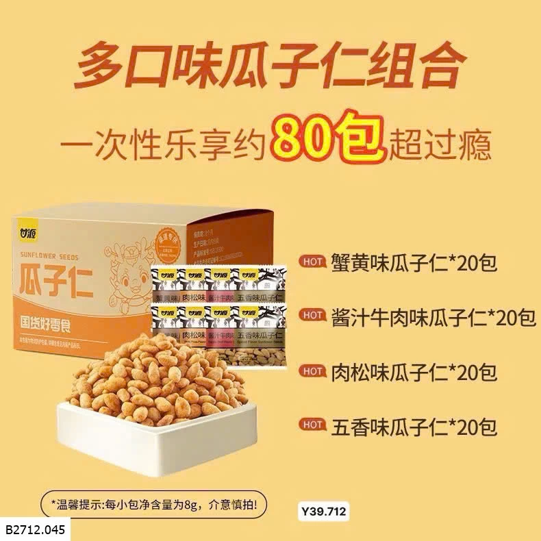 Set 80 gói hướng dương mixx 4 vị: vị ngũ hương, vị thịt nướng, vị bò sốt, vị trứng cua