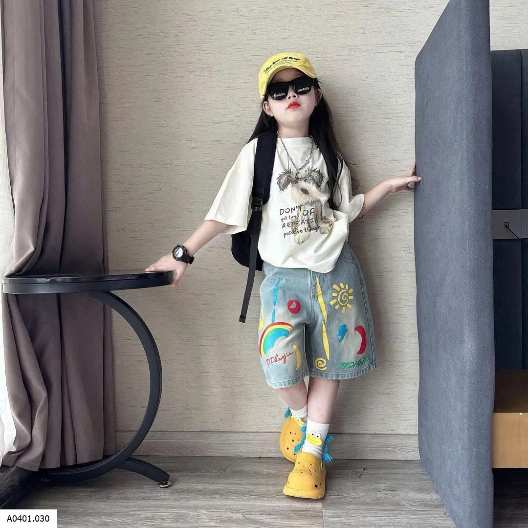 SET ÁO PHÔNG CÚN MIX SHORT JEAN HỌA TIẾT
