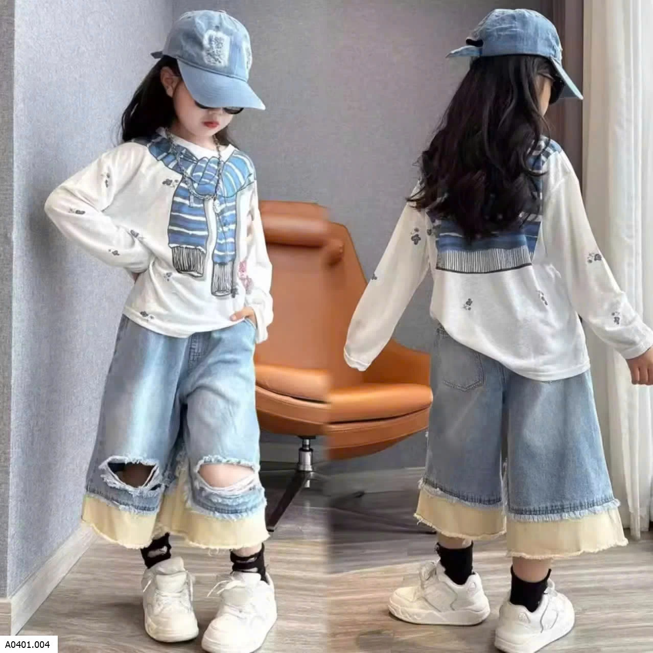 SET ÁO THUN DÀI TAY MIX QẦN JEAN RÁCH PHỐI MÀU Giá sỉ áo: 195k quần: 180k