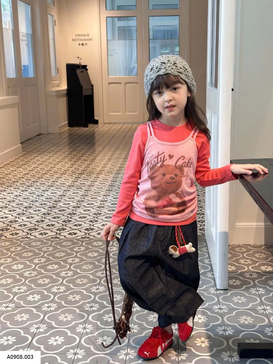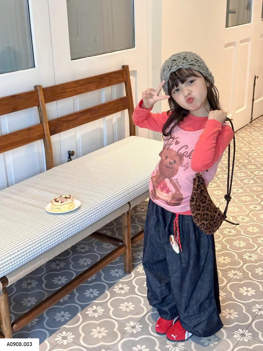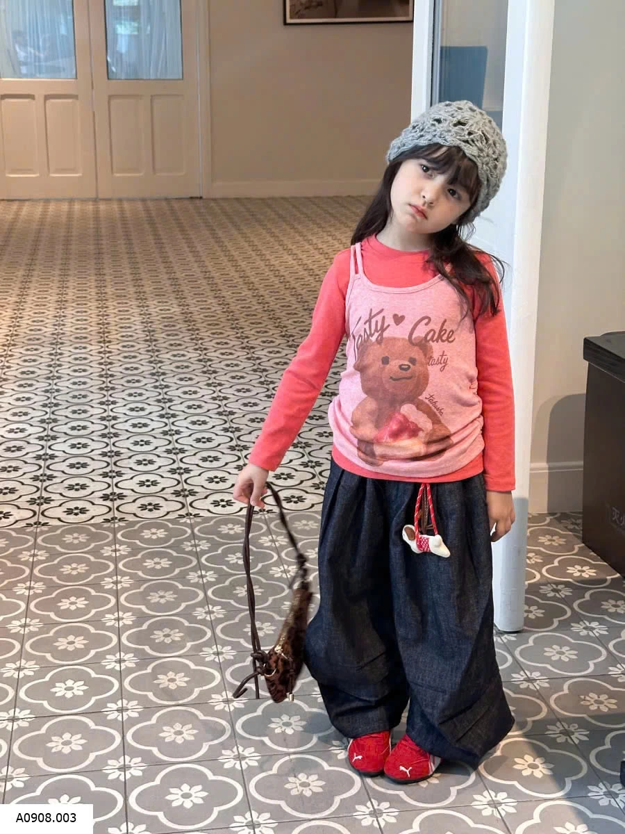 SET ÁO THUN DÀI TAY MIX QUẦN JEAN SUÔNG KÈM MÓC KHÓA