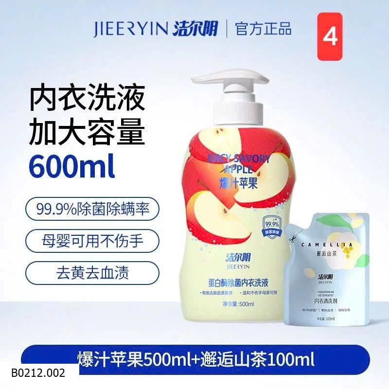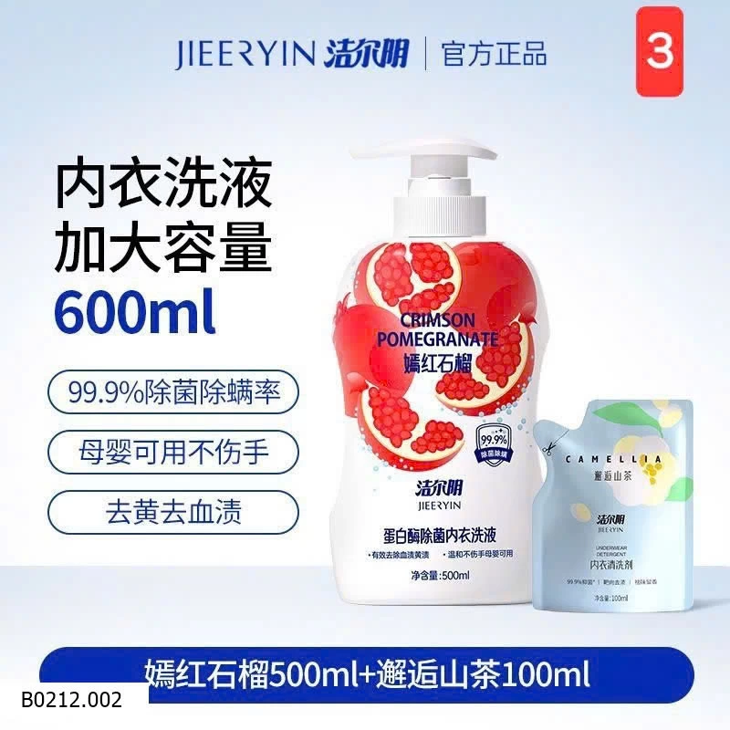 SET NƯỚC GIẶT ĐỒ LÓT JIEERYIN 500ML + GÓI 100ML Giá sỉ 120k