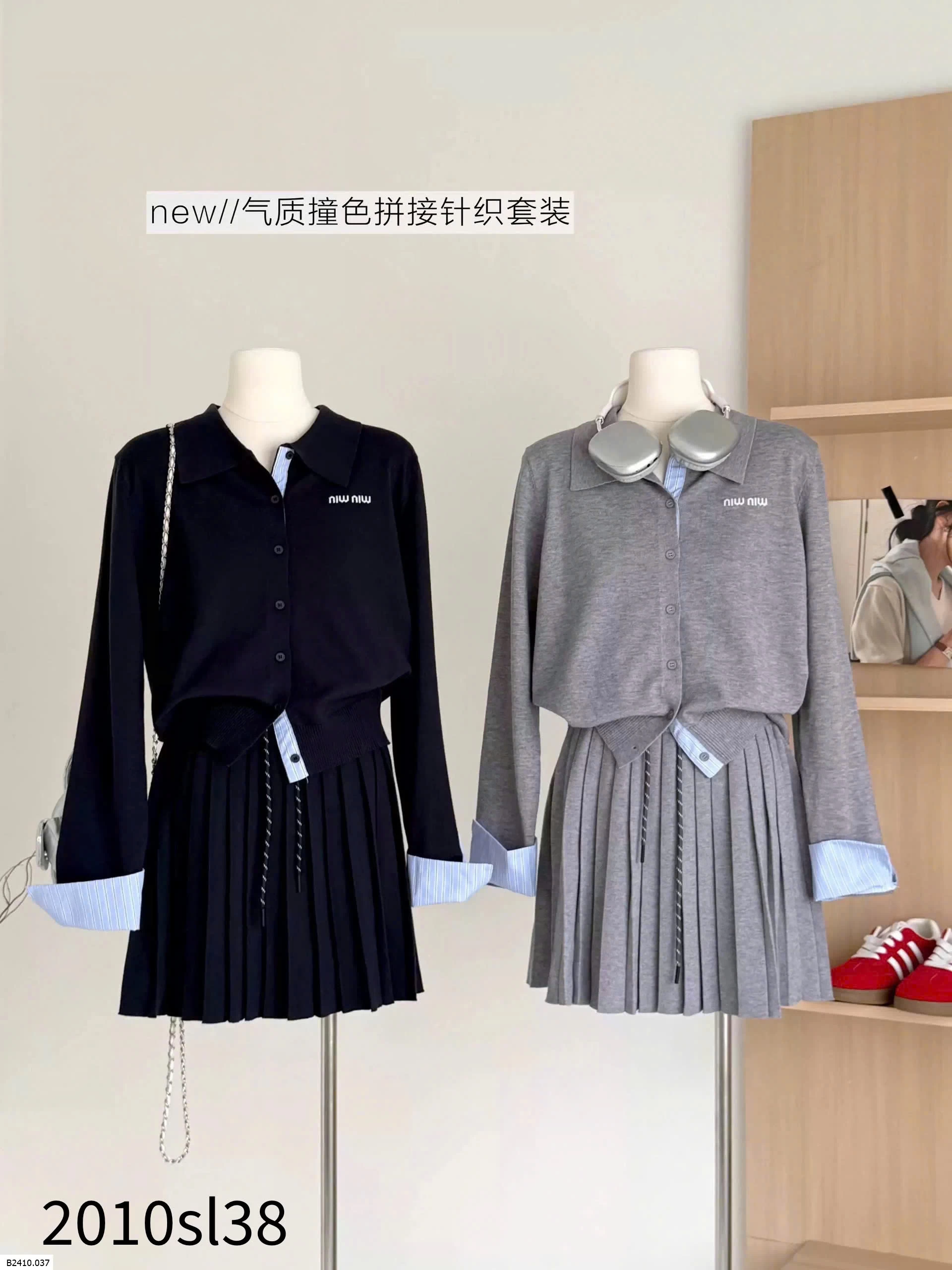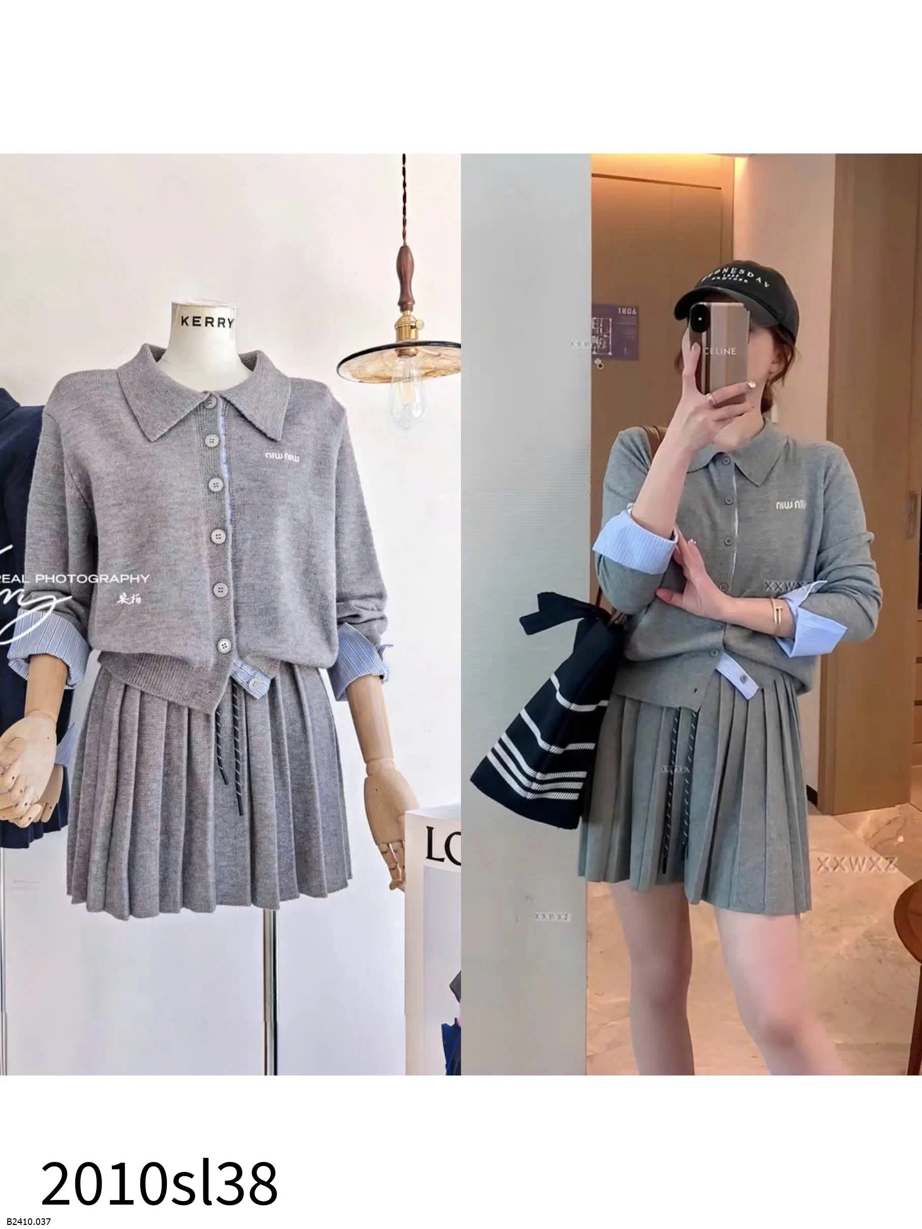 👉 Mix sẵn áo len cổ polo + chân váy xếp ly + tay phối sơ mi kẻ siêu sang chảnh