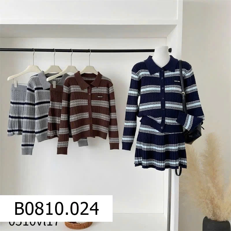 👉 Thiết kế áo len + chân váy kẻ sọc thời thượng, chuẩn style châu Âu
