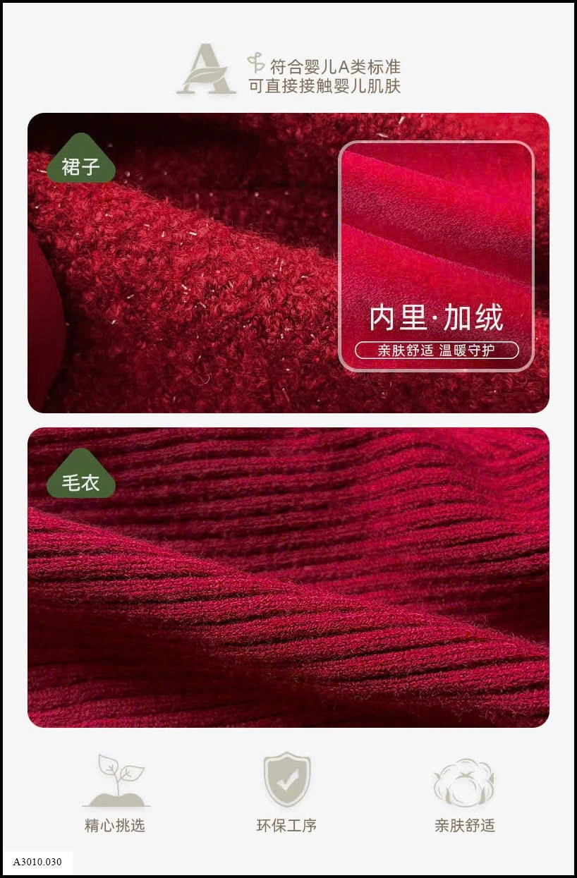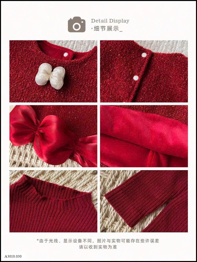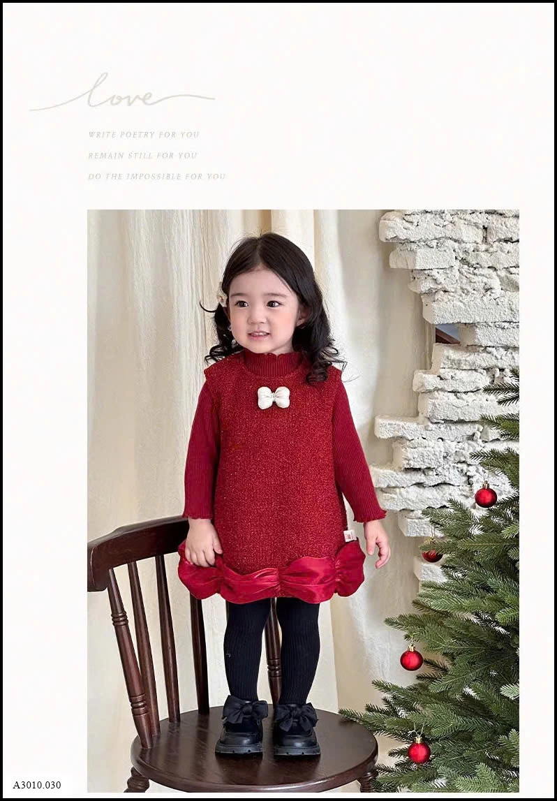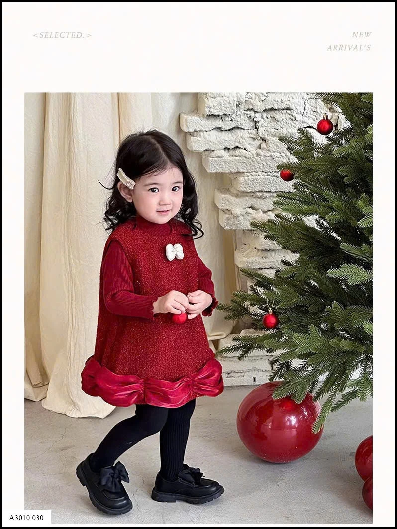 SET VÁY PHỐI ÁO LEN ĐỎ KÈM NƠ TRẮNG BÉ GÁI Giá sỉ Váy: 241k Áo: 188k