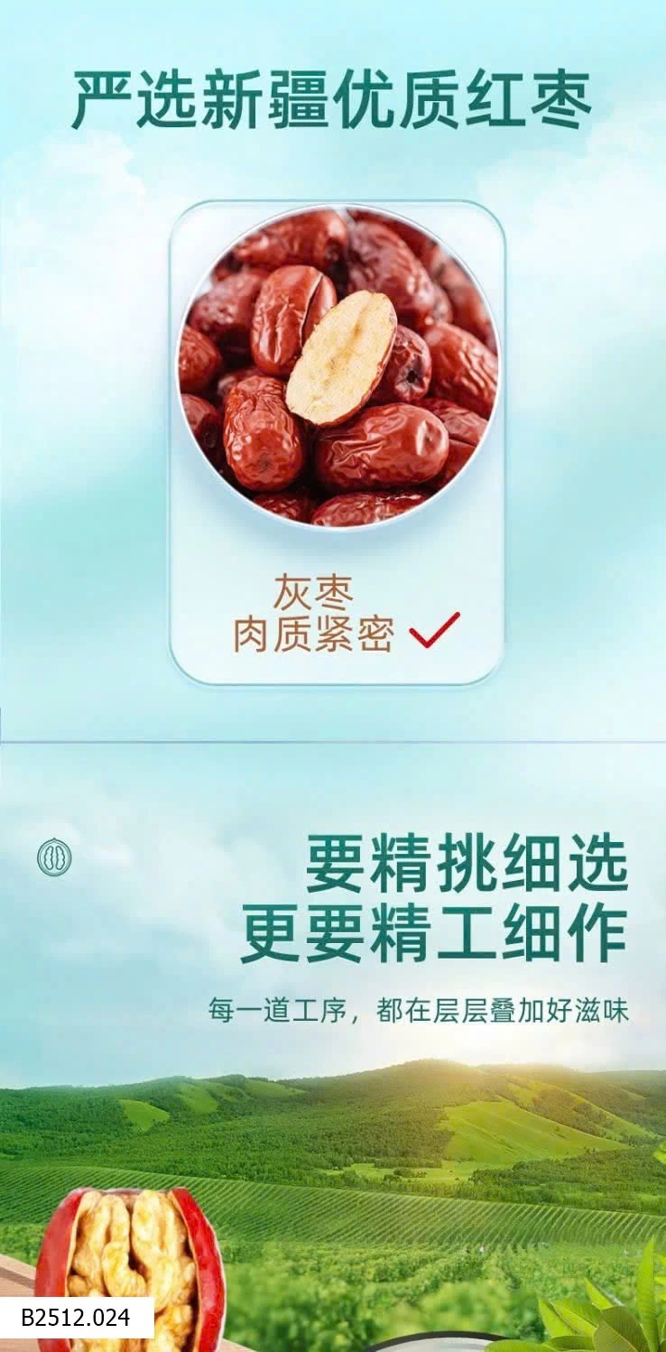Món này xuất phát từ nhu cầu của tầng lớp thượng lưu ở Bắc Kinh & Thượng Hải. Họ ngại việc ăn táo đỏ phải nhổ bỏ hạt, ăn quả óc chó thì phải bóc vỏ. Muốn ăn nhưng lại ngại phiền phức, nên mới “phát minh” ra món táo đỏ kẹp quả óc chó này.