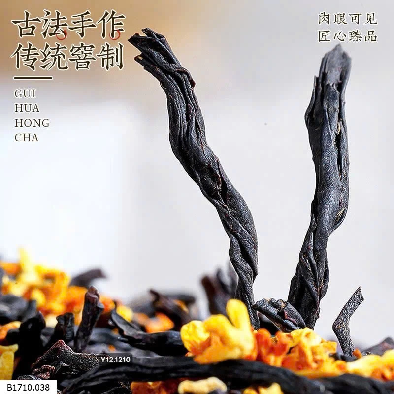 ✨ Kết hợp hồng trà Kim Tuấn Mi thượng hạng và hoa quế vàng thơm nồng, mang lại vị trà thanh ngọt, hương đậm, hậu vị dịu êm 🌸