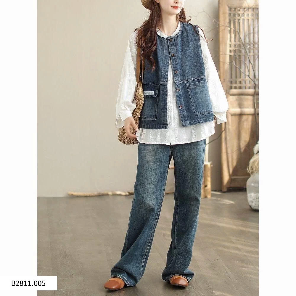ÁO GILE DENIM DÁNG RỘNG CHO NỮ Giá sỉ 165k
