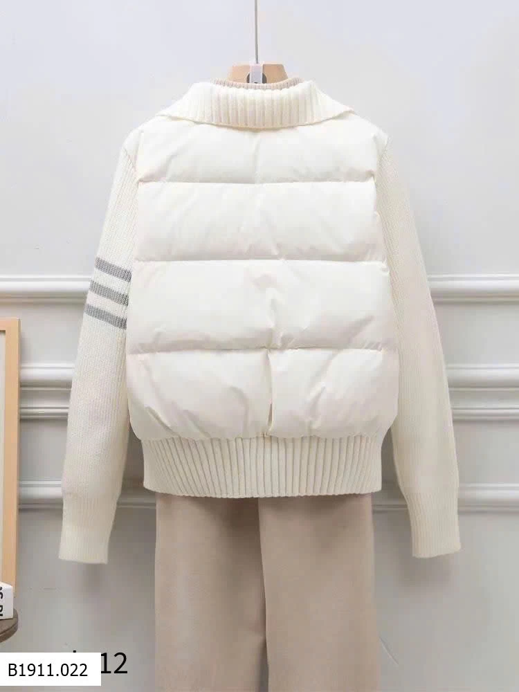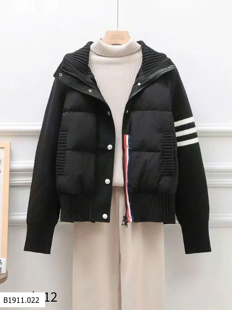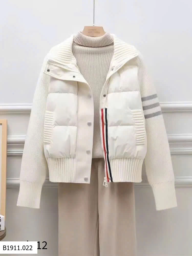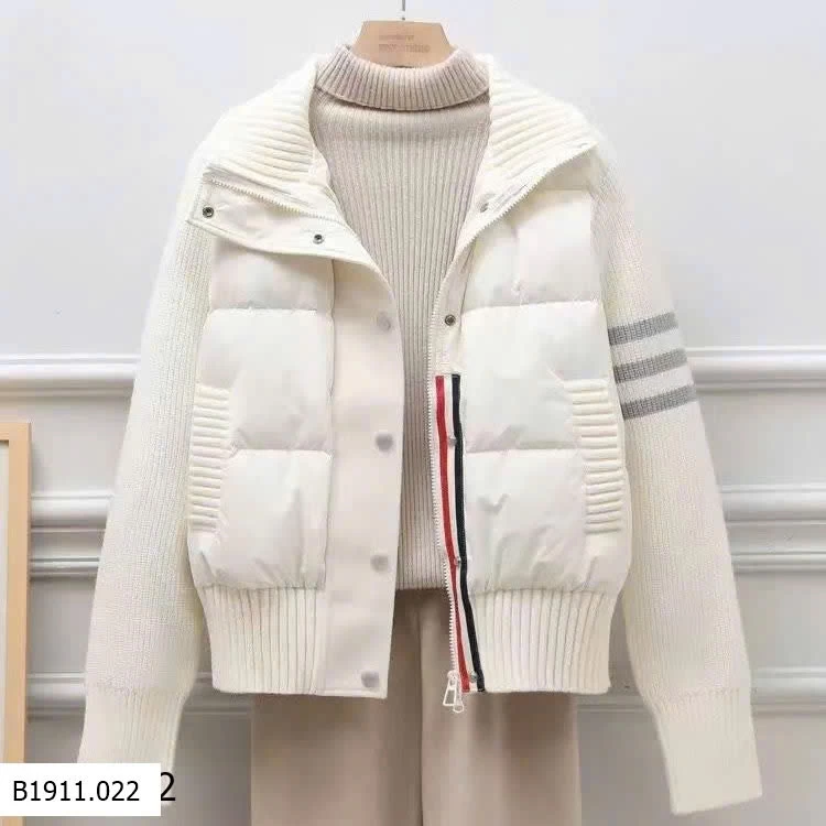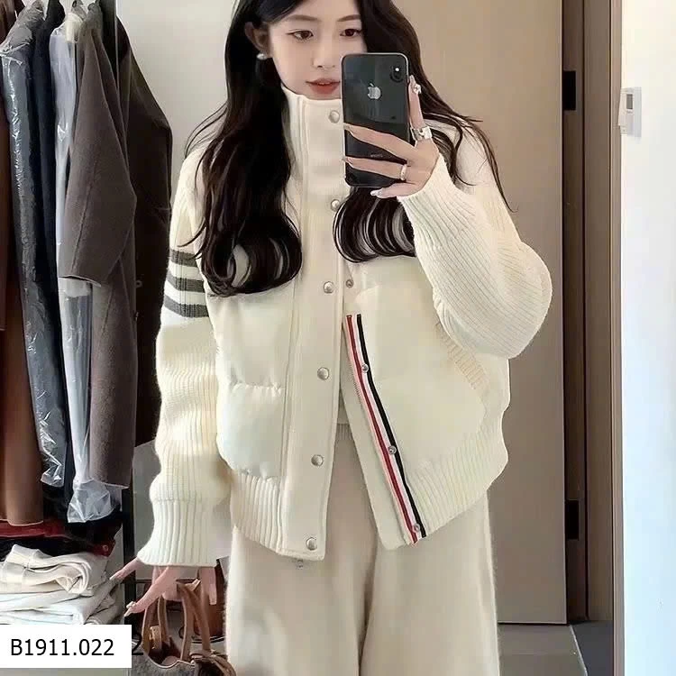 Form áo Hàn Quốc phối len dệt và phao chần bông cao cấp, giữ ấm cực tốt mà vẫn nhẹ và tôn dáng.