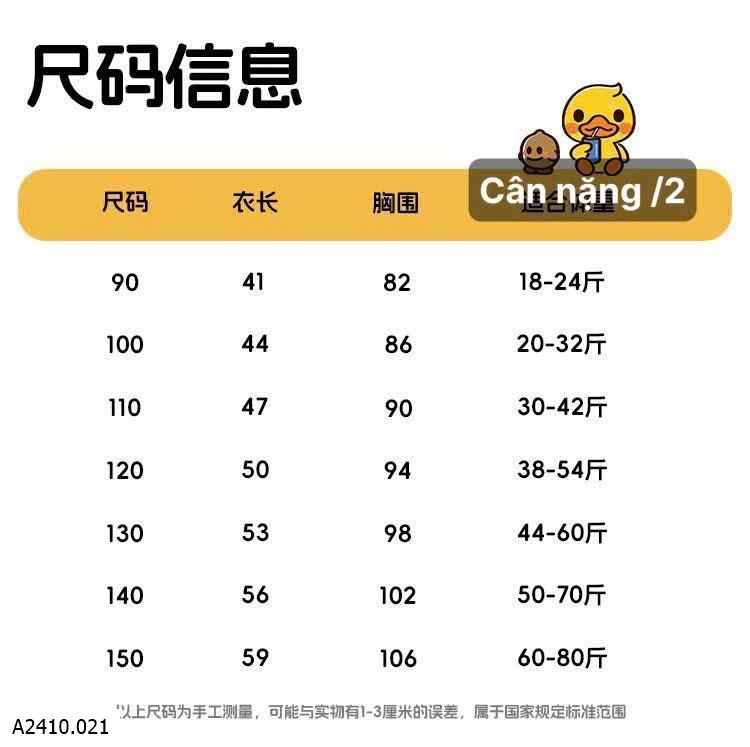 Bảng size tham khảo: