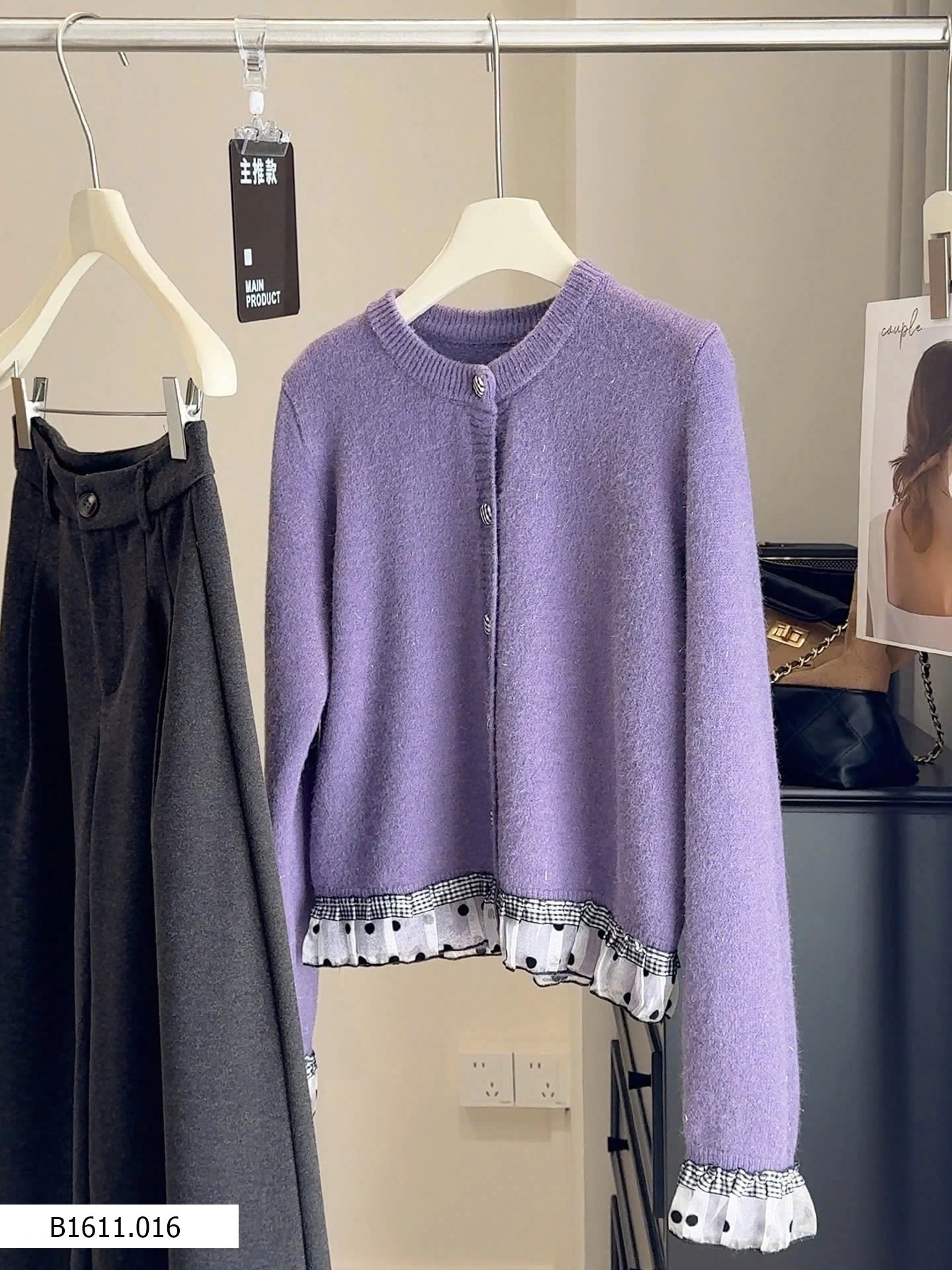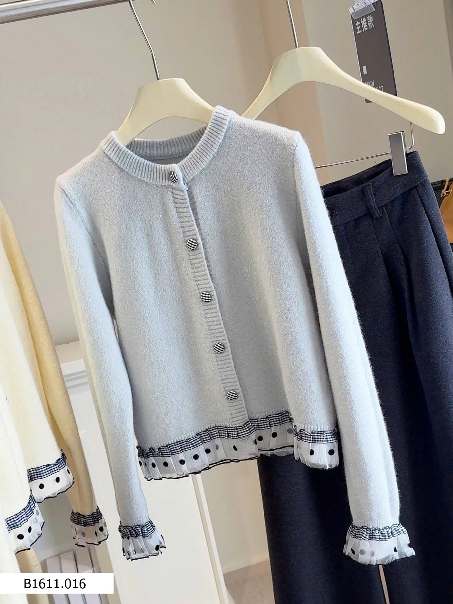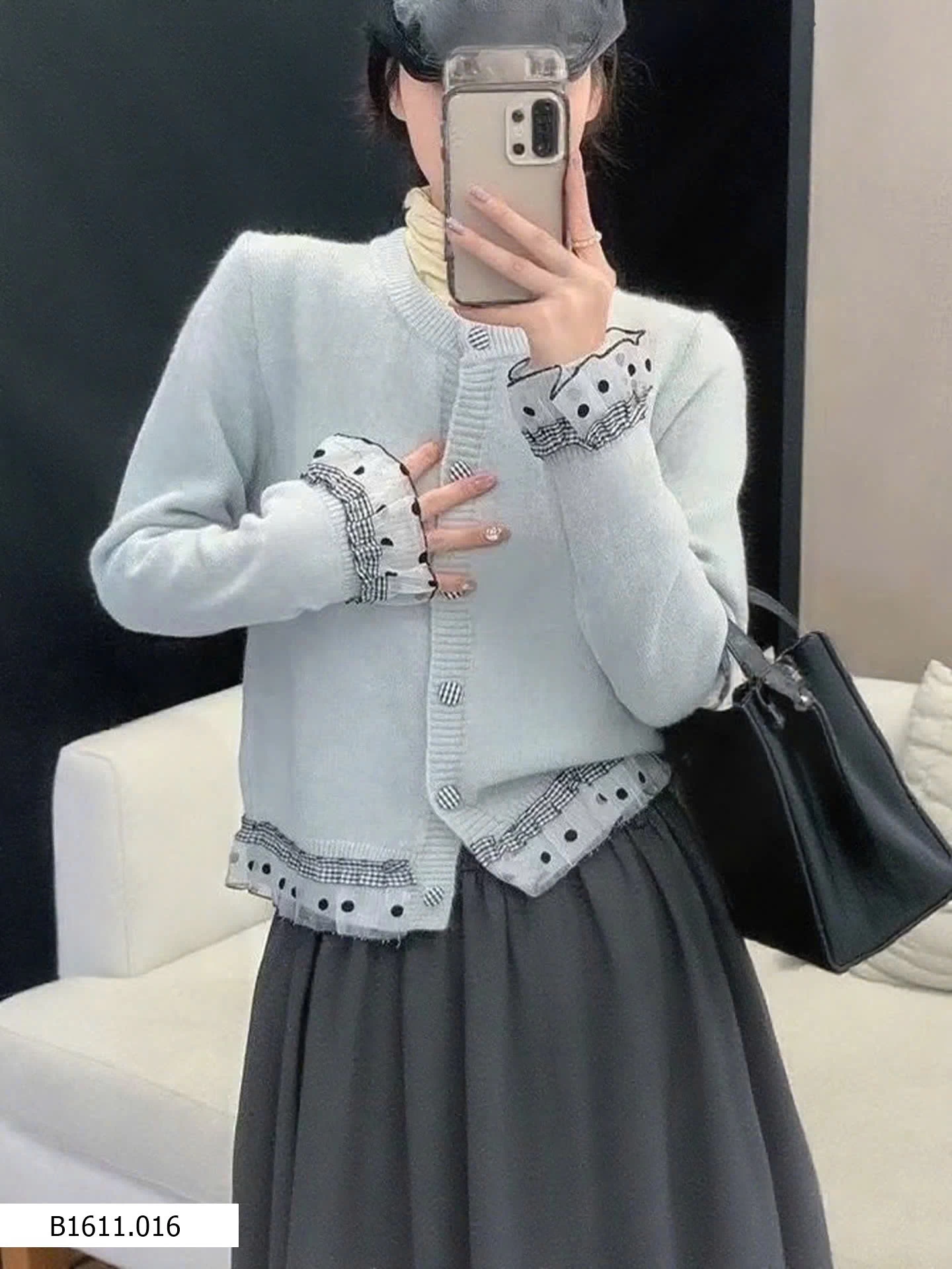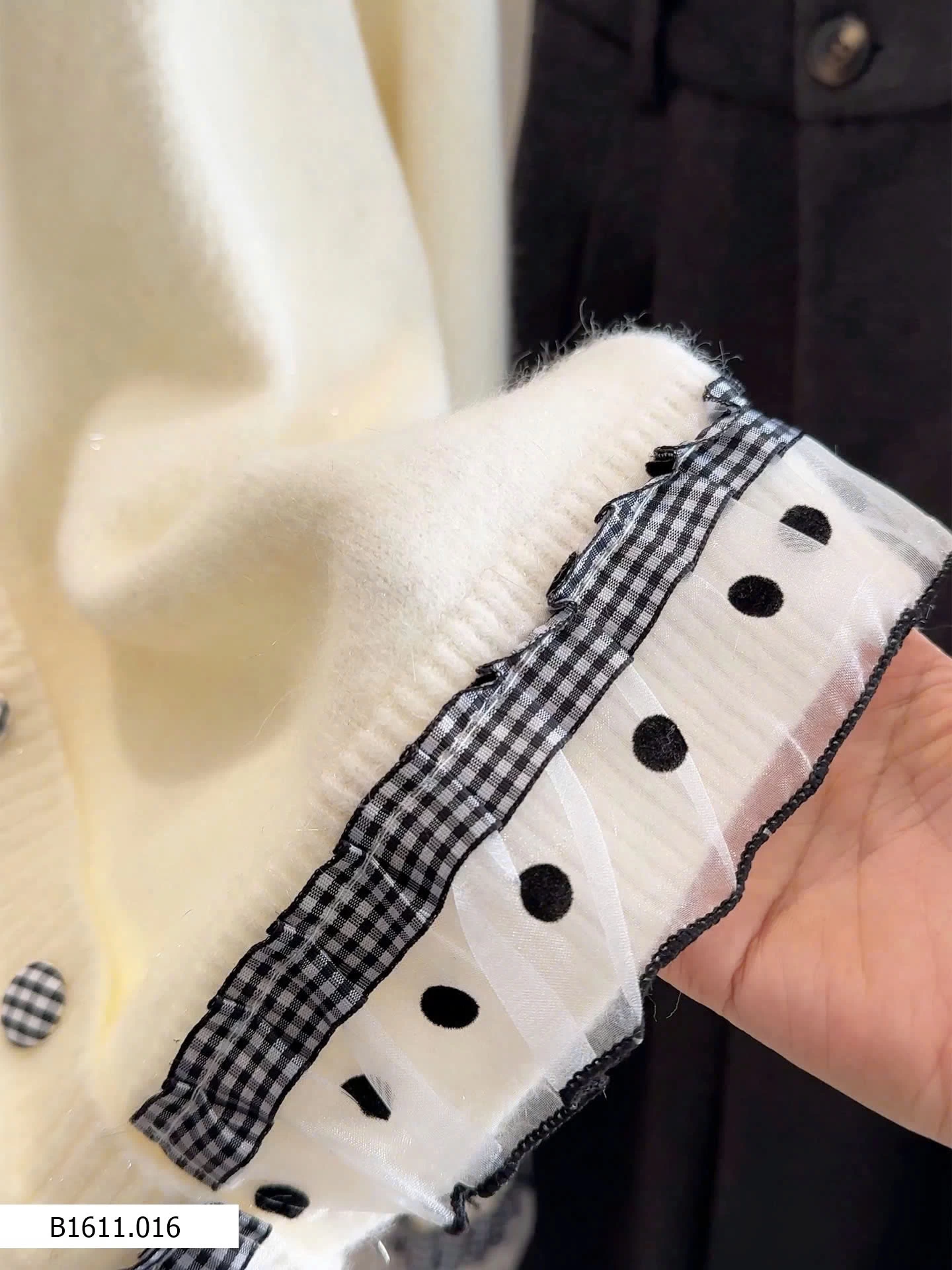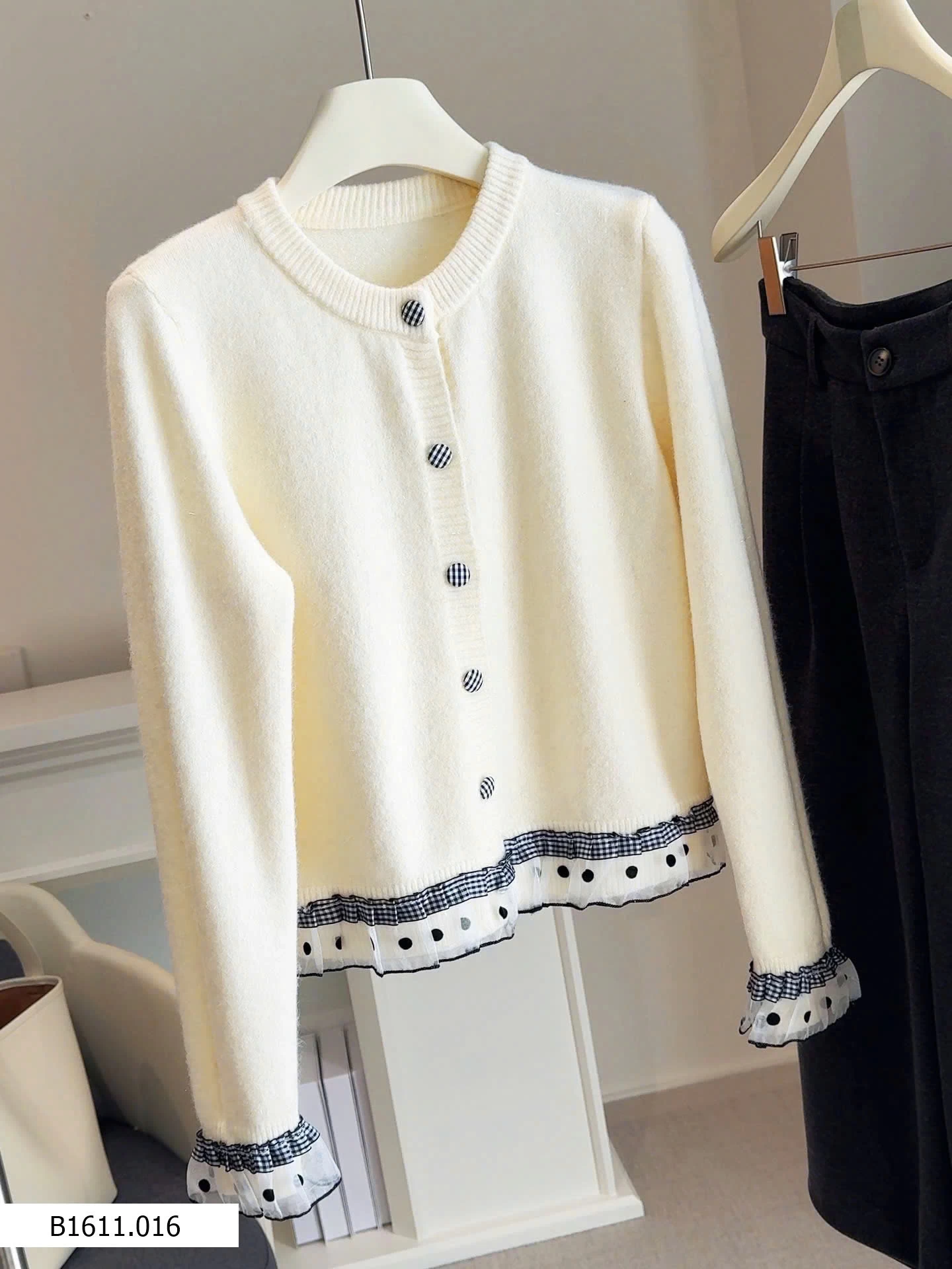 Chất len mềm, phối viền chấm bi nữ tính