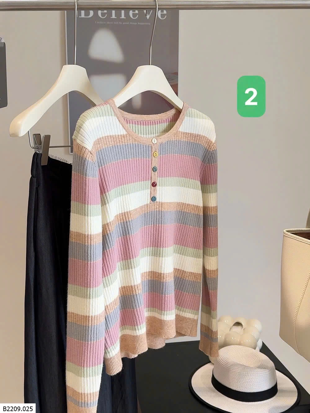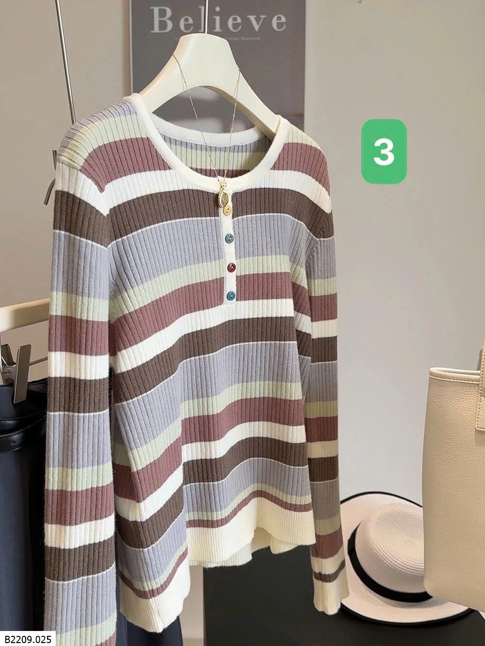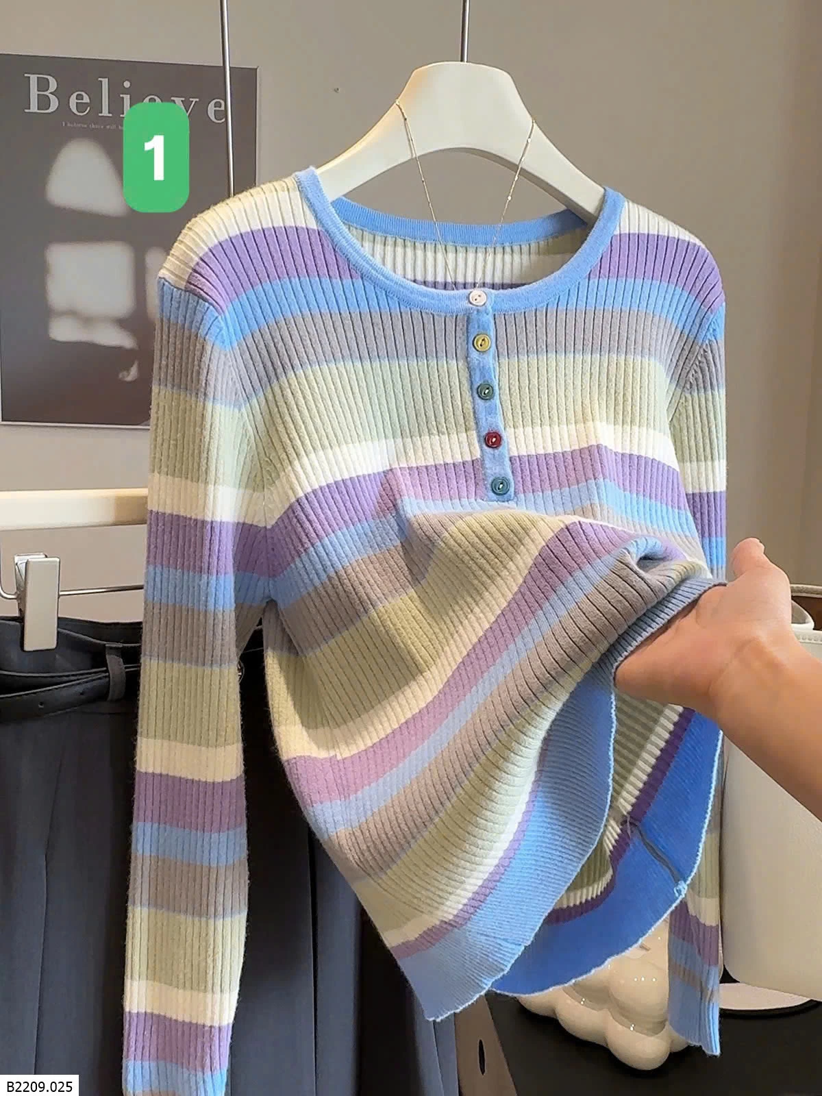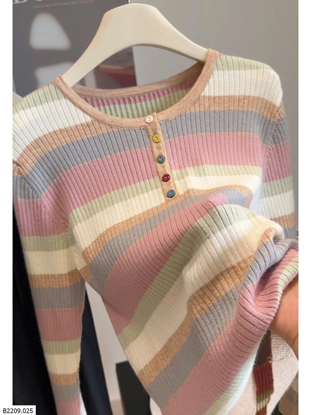 ÁO LEN KẺ SẮC MÀU CÚC NGỰC ANNA Giá sỉ 169k