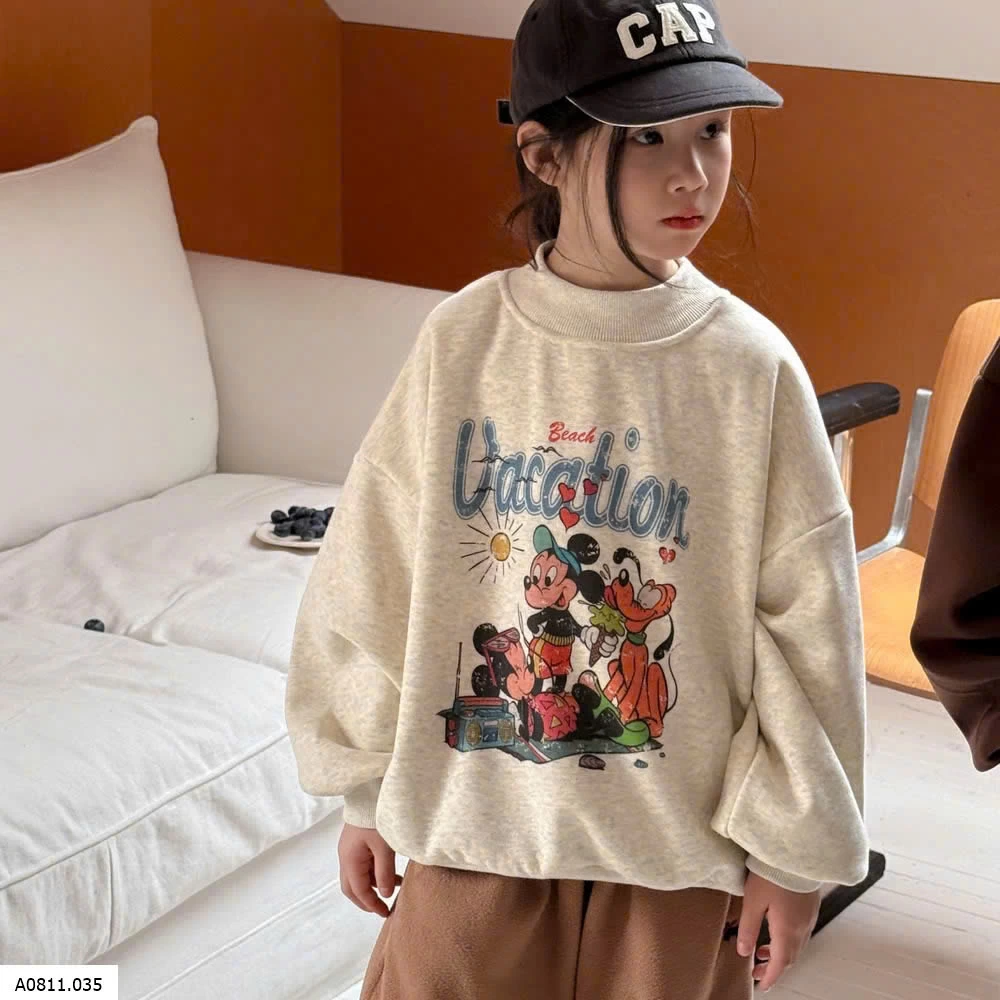 ÁO NỈ DÀY CỔ TRÒN IN HÌNH CUTE CHO BÉ