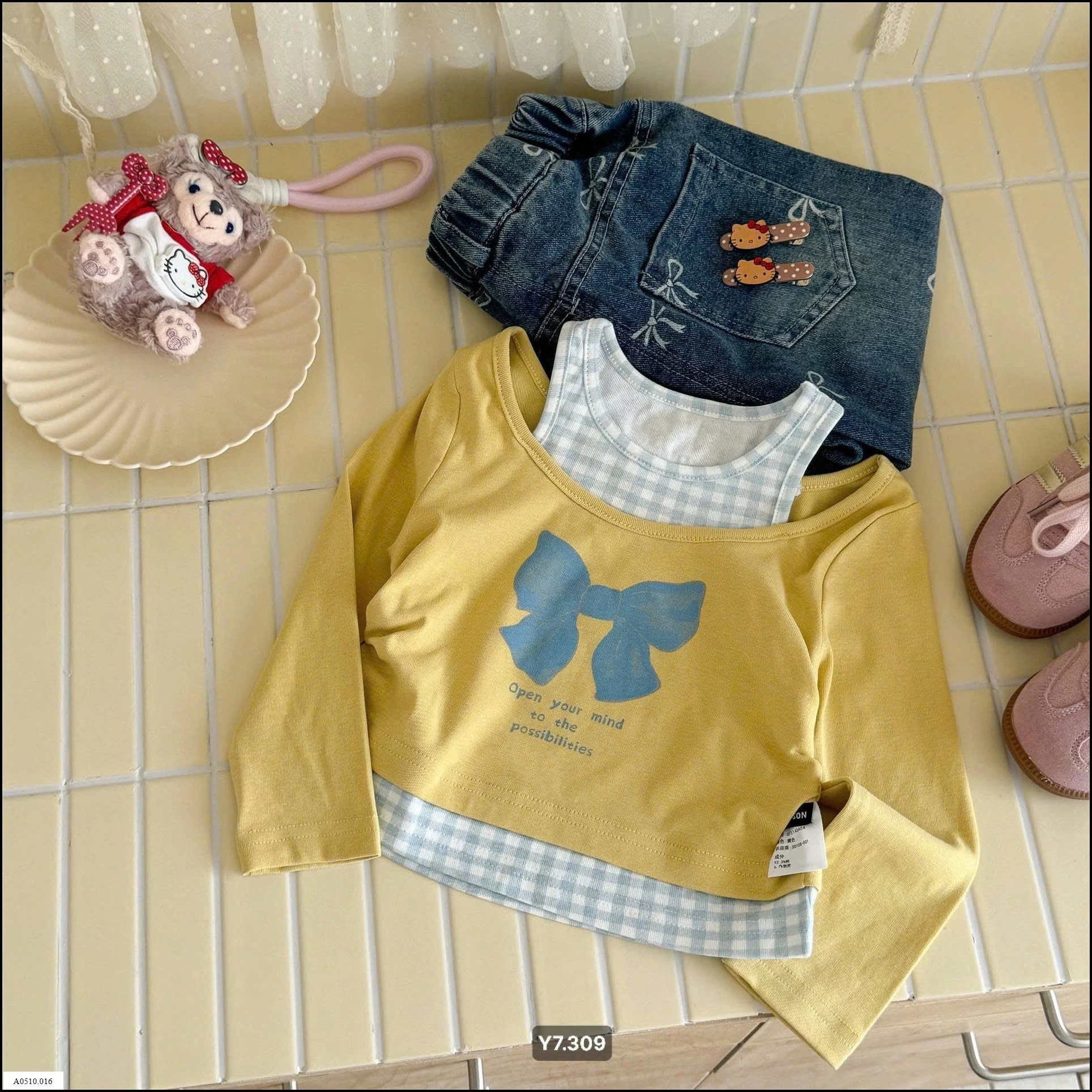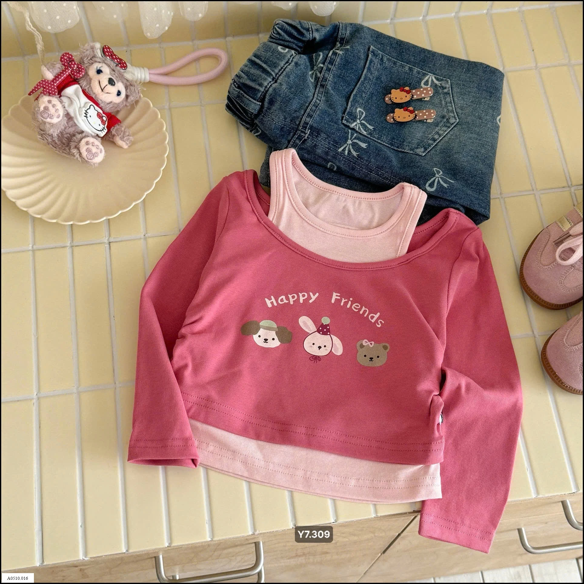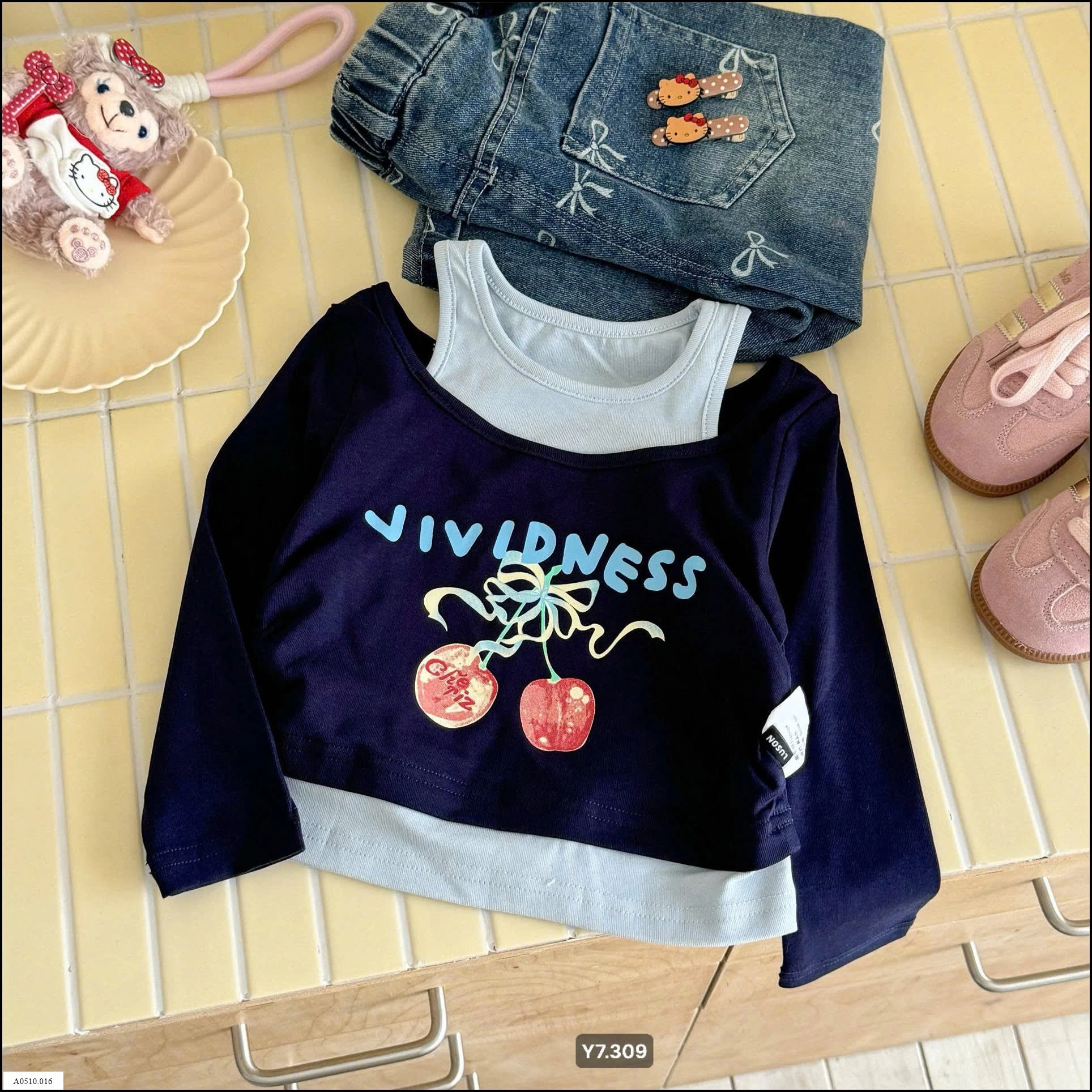 🦋Thiết kế kiểu layering siêu yêu: áo dài tay + áo 2 dây may liền, vừa gọn vừa trendy 💕