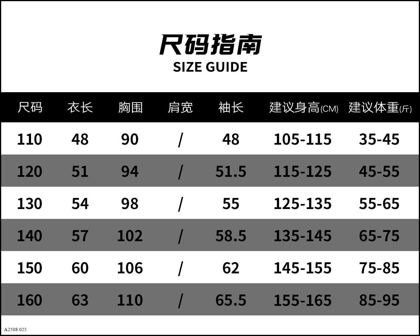 - size 110-160