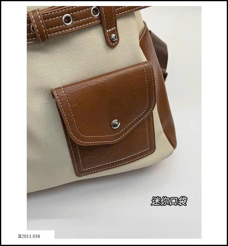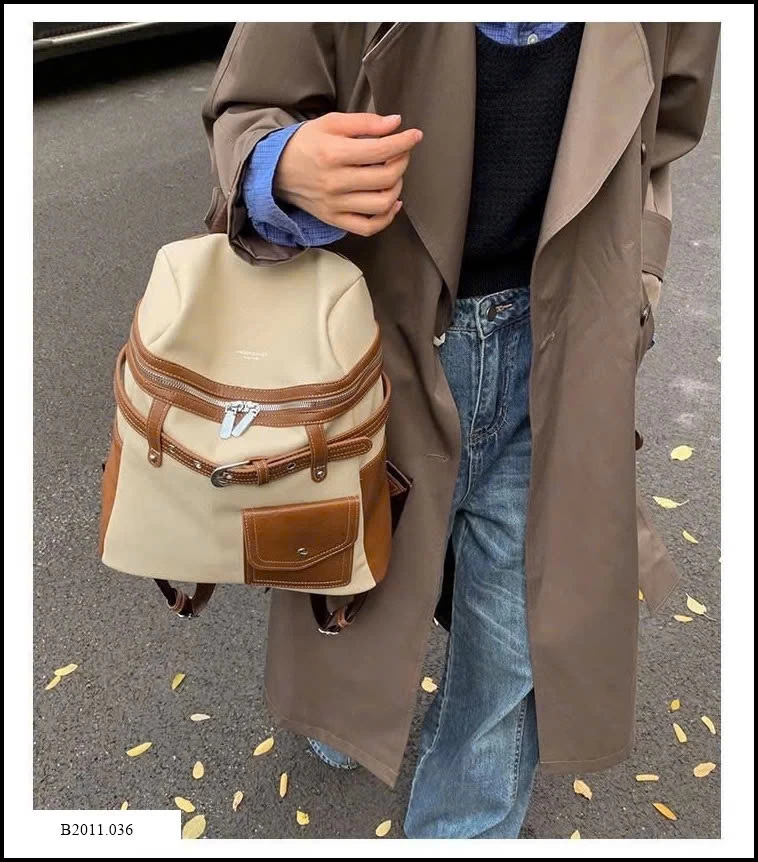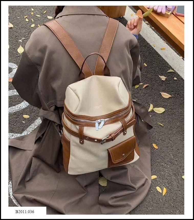Balo da phối vải thời trang, thiết kế hiện đại và tiện dụng. Chất liệu bền bỉ, kết hợp giữa da PU và vải canvas mang đến cảm giác chắc chắn nhưng vẫn nhẹ nhàng.